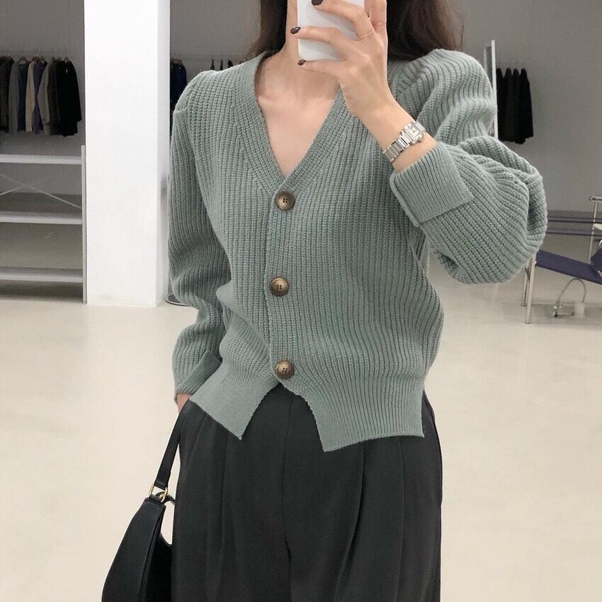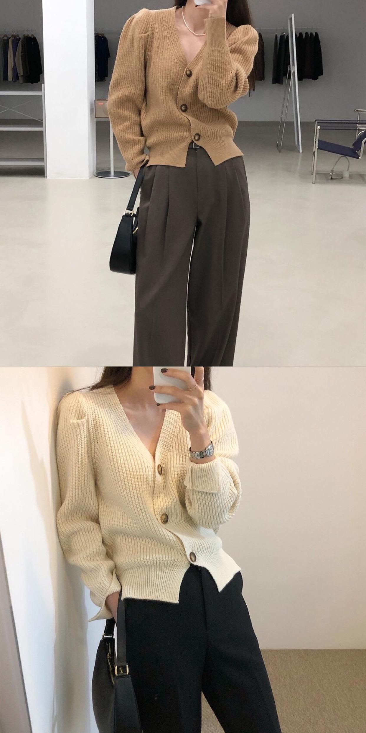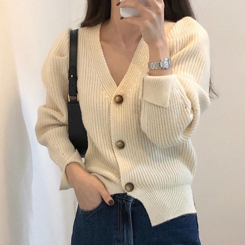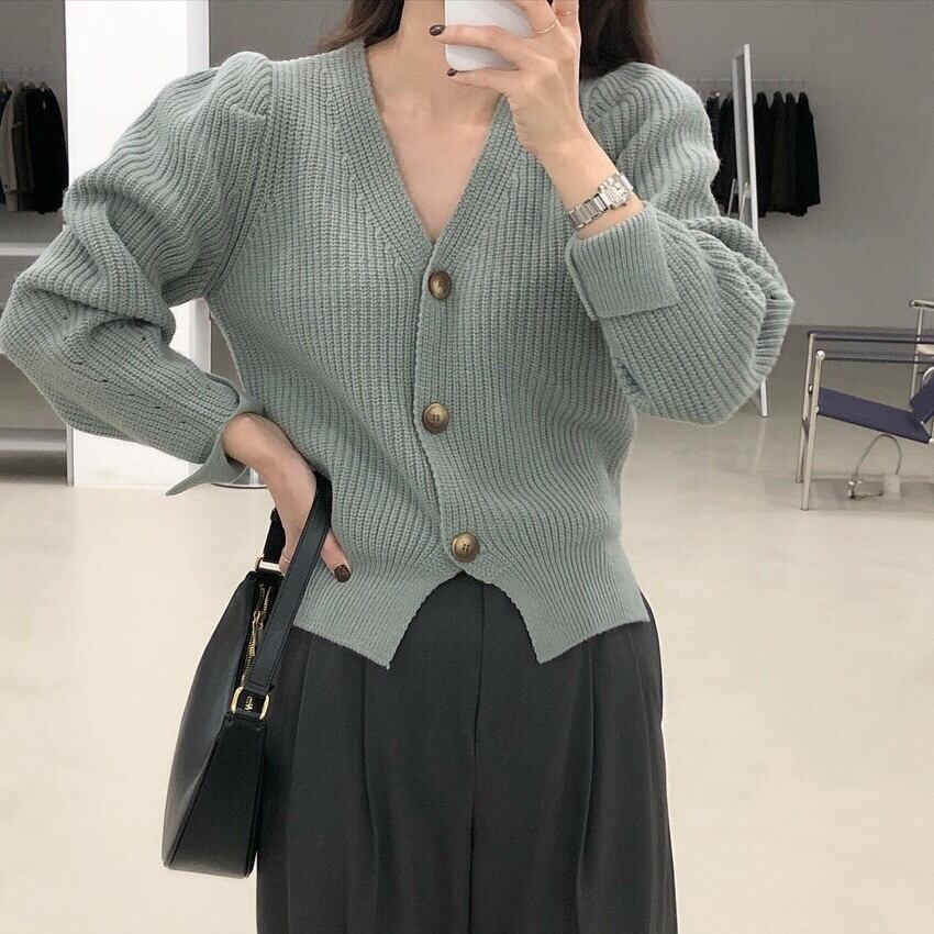 【韓国ファッション】大人可愛い オータムウィンターVネックルーズカジュアルストライプスリーブニットカーディガンセーター ランタンスリーブ 秋物 冬物 ♡ 韓国97639746189 | パリジェンヌ、韓国系ファッション July