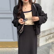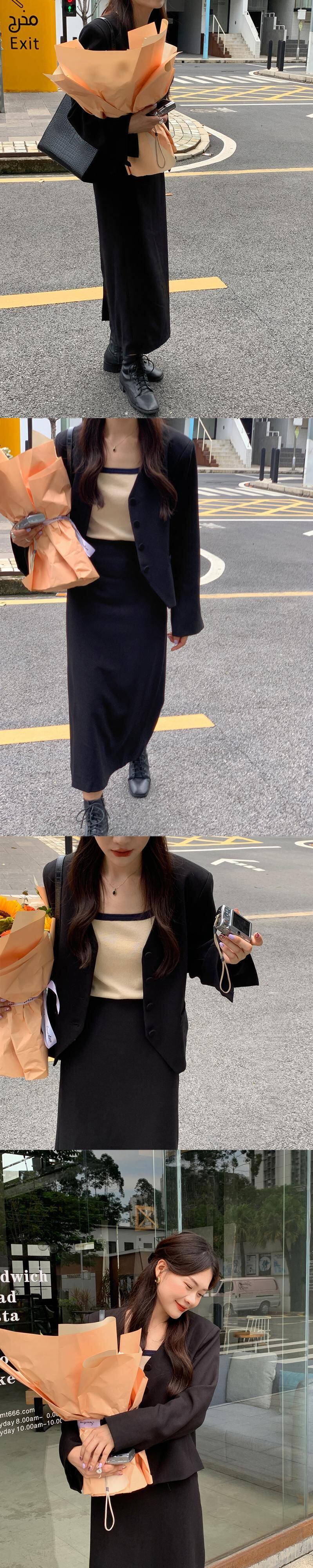 【韓国ファッション】大人可愛い スタンダードVネックルーズショートジャケット ハイウェストバックスリットスカート ロング レトロ ♡ 韓国22441810209 | パリジェンヌ、韓国系ファッション July