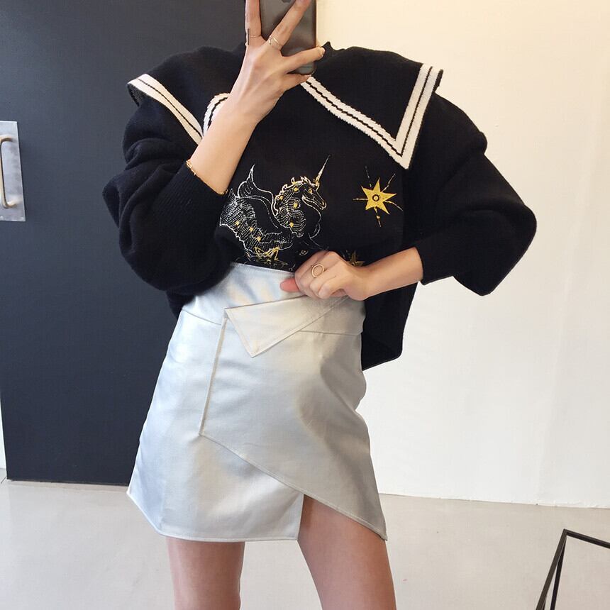 色:シルバーハーフスカートSサイズ,シルバーハーフスカートMサイズ,ブラックスカートSサイズ,黒スカートM,ブラックニット,オフホワイトのニット