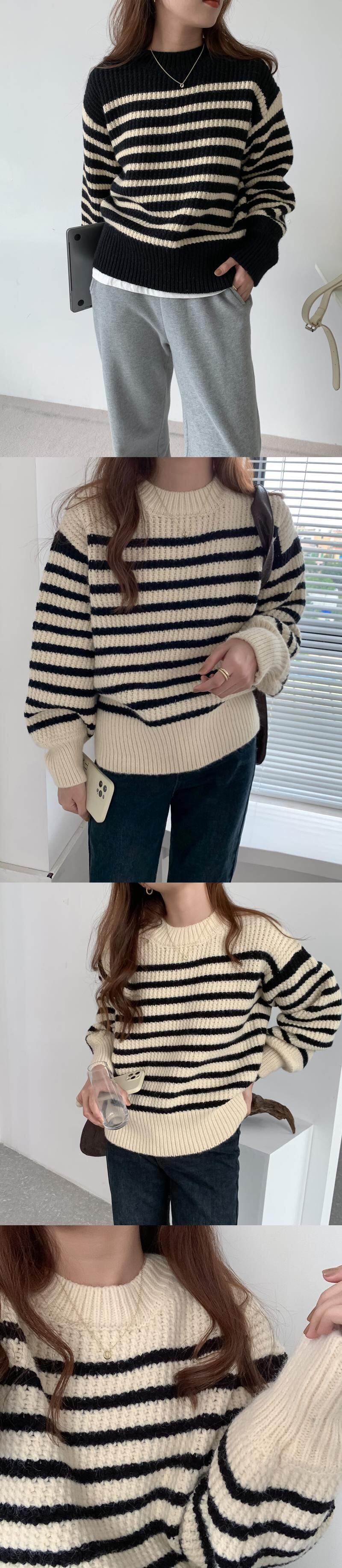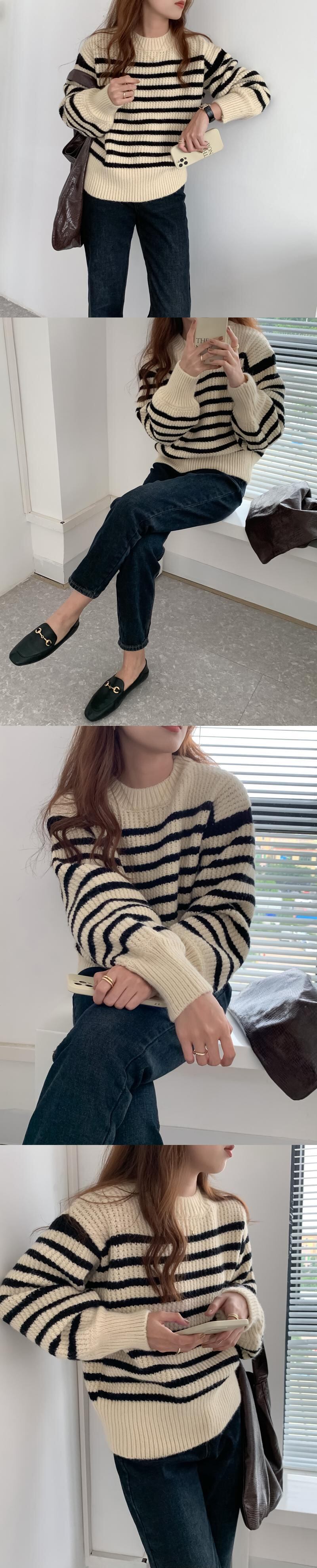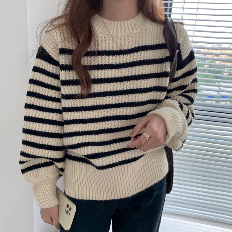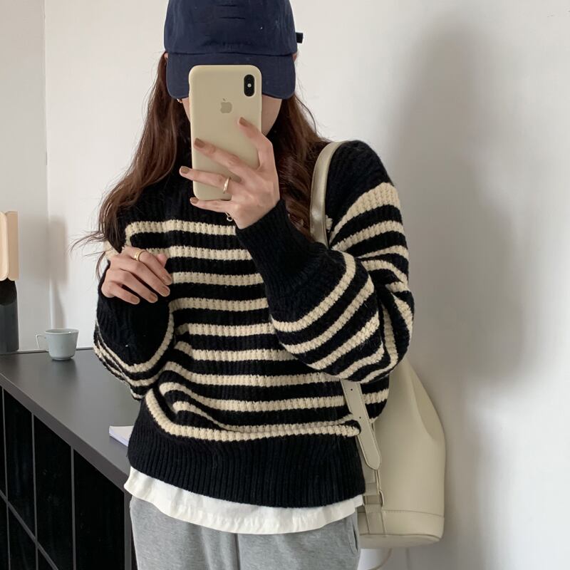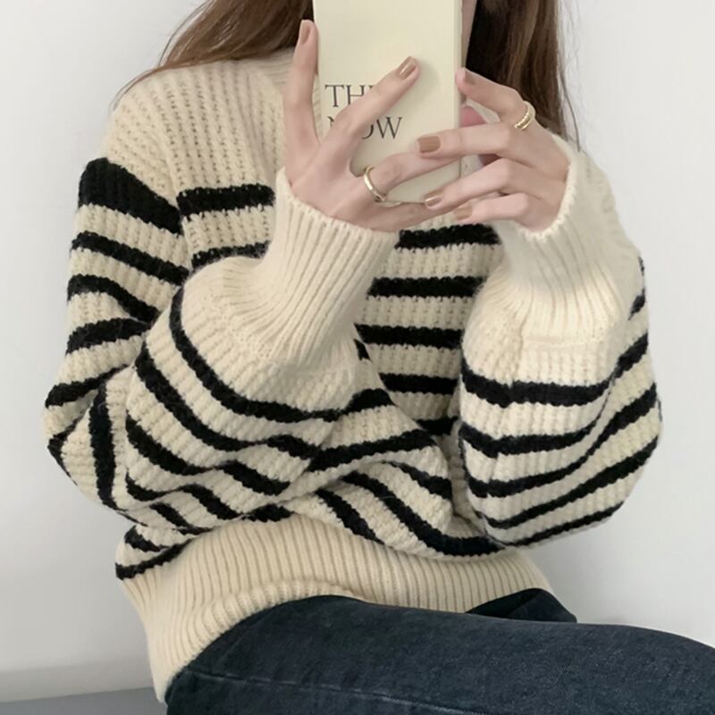 【韓国ファッション】大人可愛い スタンダードラウンドネックプルオーバー ストライプカラールーズカジュアルニットセーター ロング レトロ Oネック ♡ 韓国90025138158 | パリジェンヌ、韓国系ファッション July