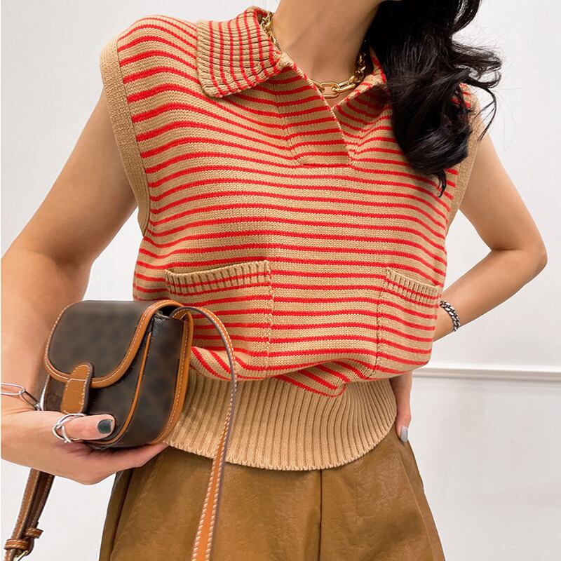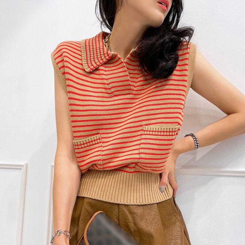【韓国ファッション】大人可愛い オータムスタンダードプルオーバー カラーストライプルーズダブルポケットノースリーブニットセーター レディース レトロ 秋物 ♡ 韓国74215664111 | パリジェンヌ、韓国系ファッション July