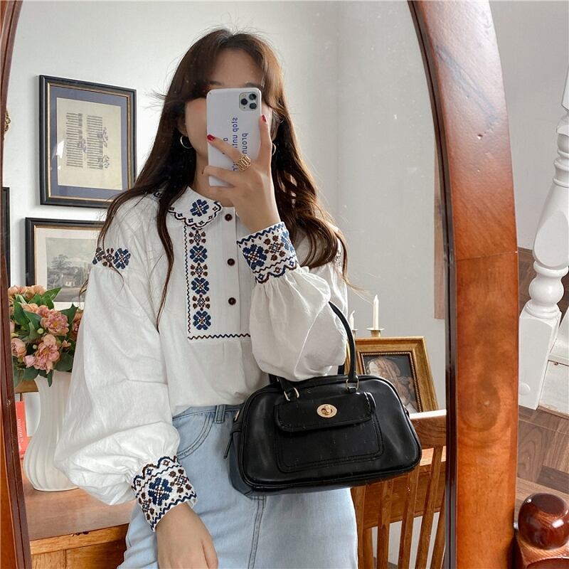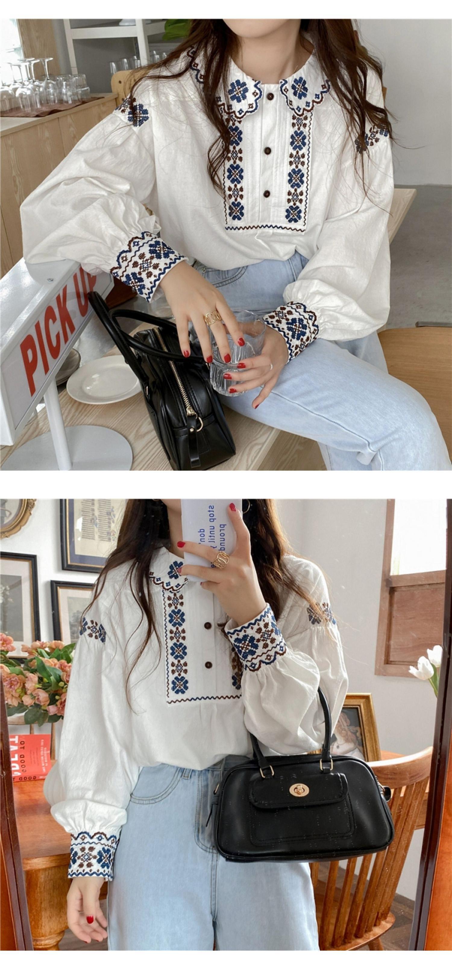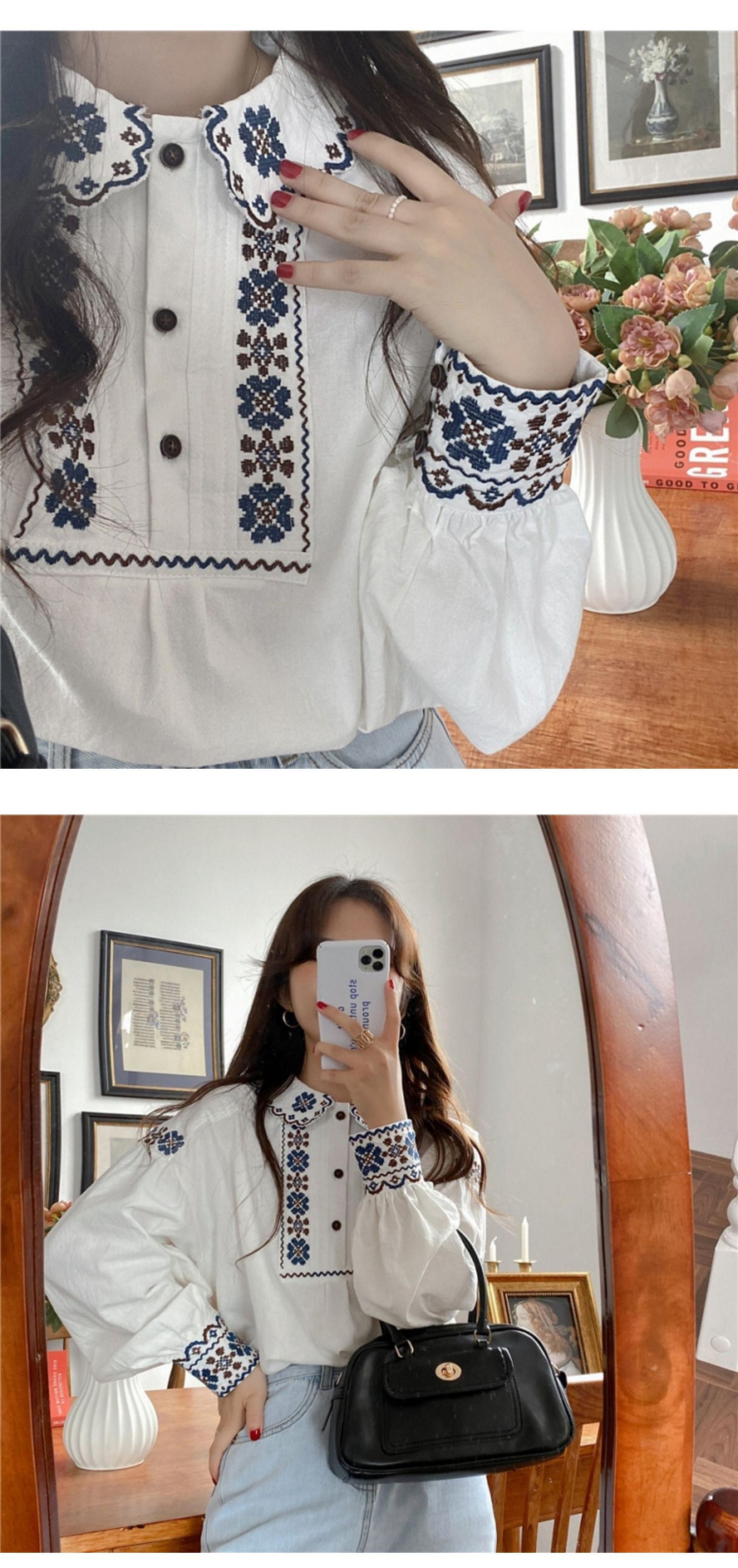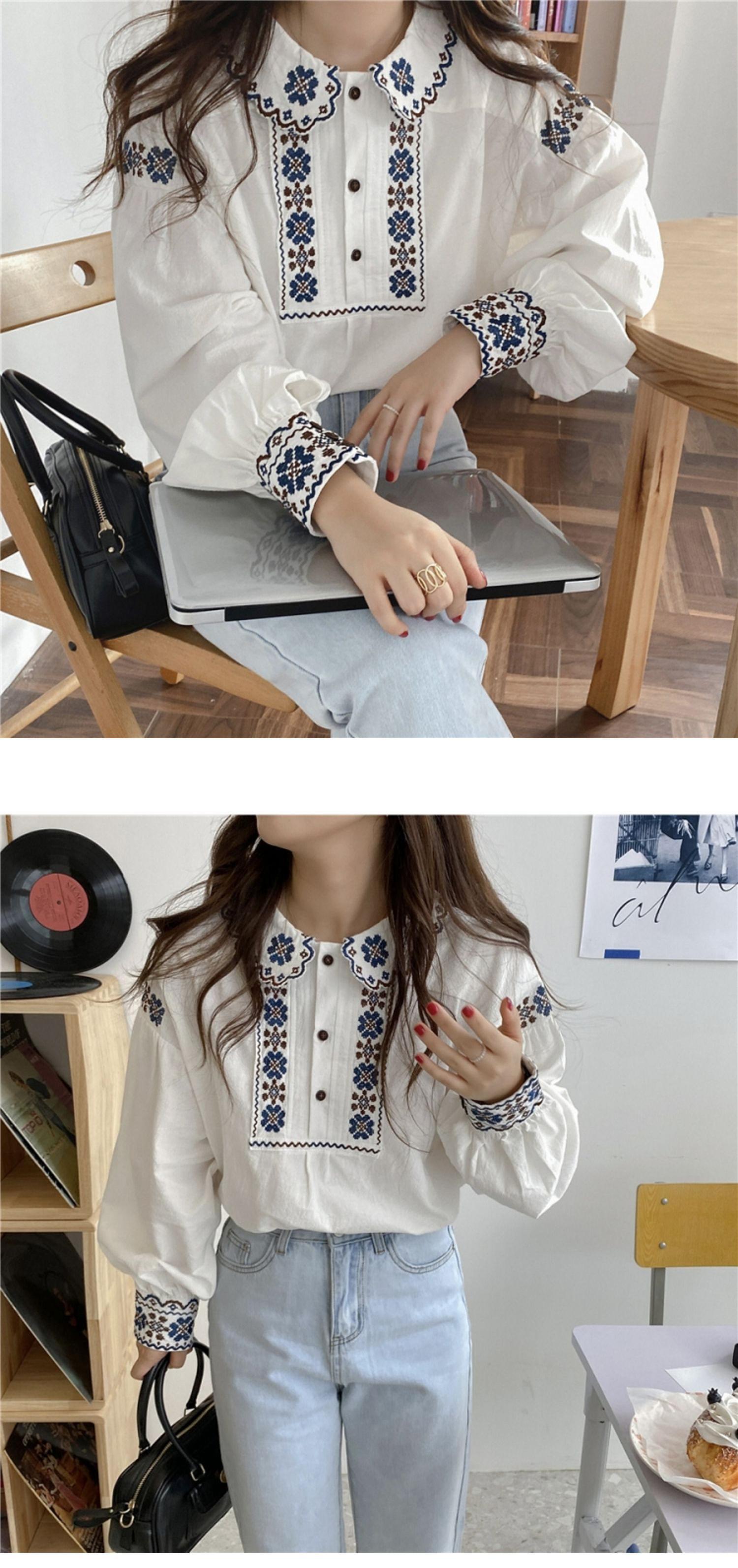 韓国服 スタンダード刺繍ヴィンテージエスニックスタイルスリーブシャツ オータムカラートップス ロング レトロ 秋物 ビンテージ ♡ nanfeng81690227780 | パリジェンヌ、韓国系ファッション July