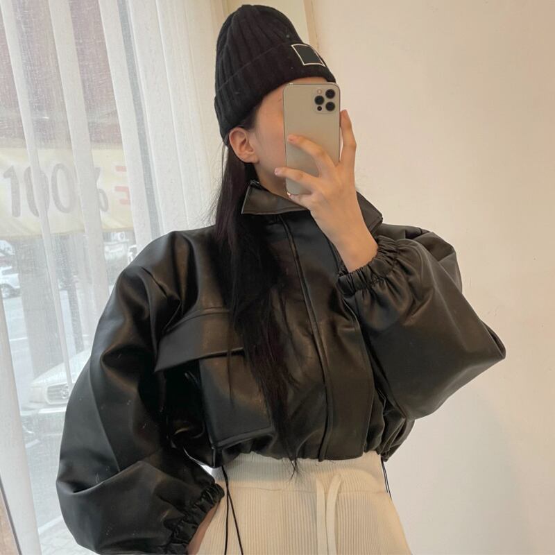 【韓国ファッション】大人可愛い オータムスタンダードポケットルーズギャザースリーブレザージャケット ショートコート レトロ 秋物 ♡ 韓国59547916572 | パリジェンヌ、韓国系ファッション July