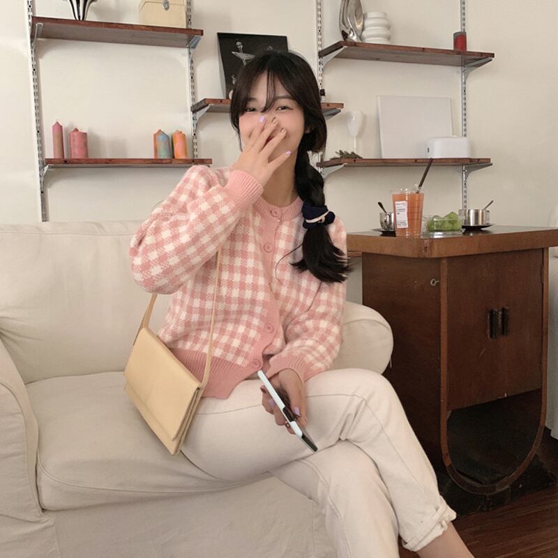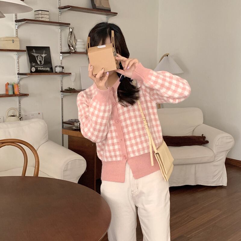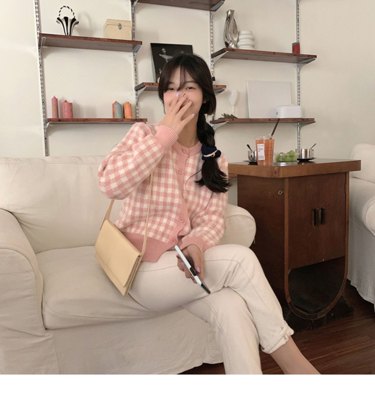 韓国服 格子柄セーター カーディガンジャケット オータムウィンタールーズ薄手スタイルクロップドトップス 秋物 冬物 ♡ nanfeng84204790901 | パリジェンヌ、韓国系ファッション July