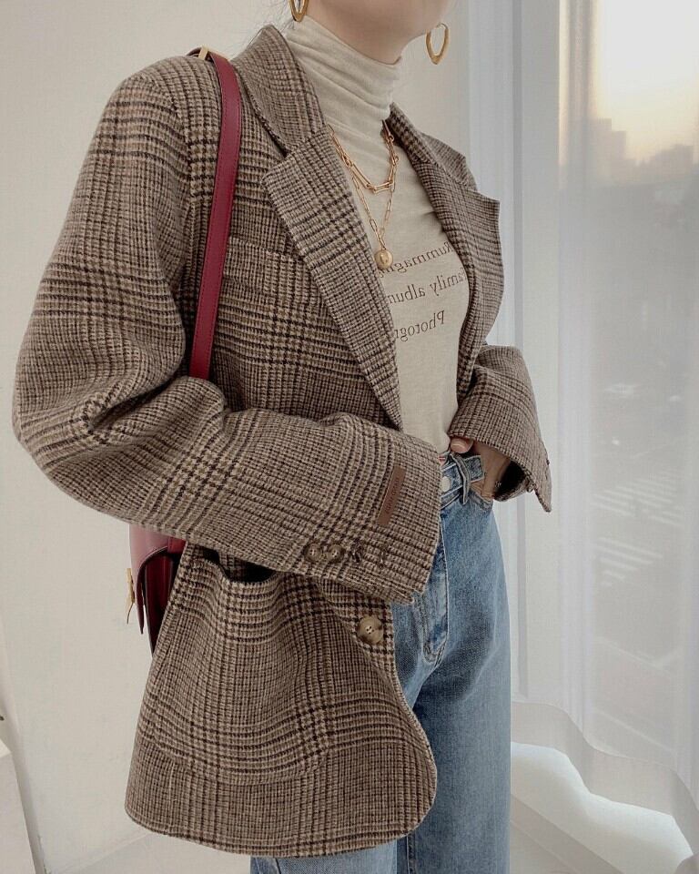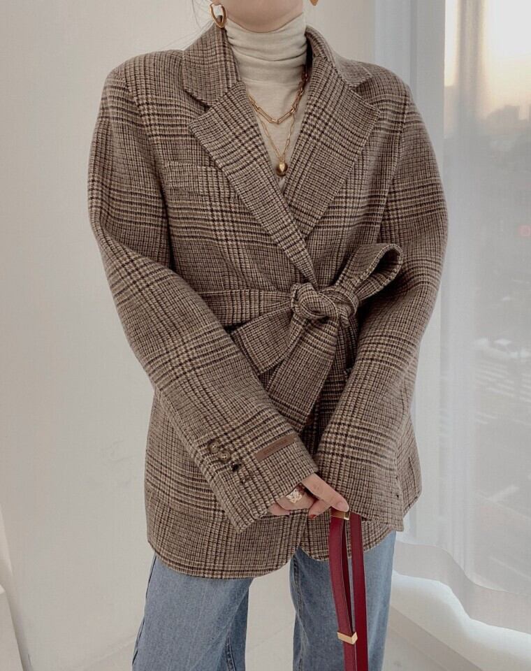 【韓国ファッション】大人可愛い オータムスタンダードルーズウェストカーディガン格子柄ショートジャケット ロング レトロ 秋物 ♡ 韓国36825620113 | パリジェンヌ、韓国系ファッション July