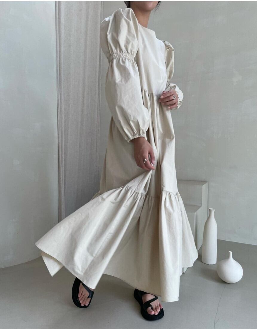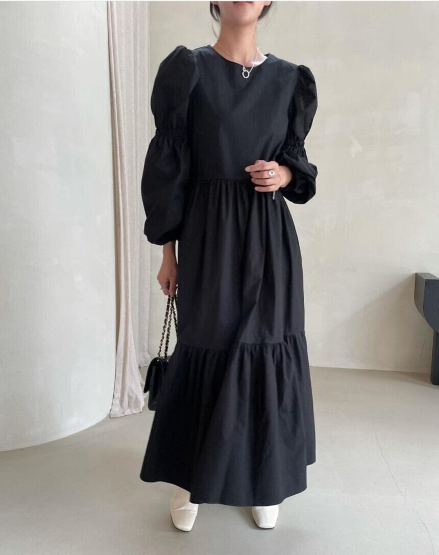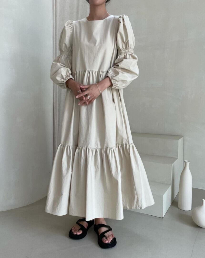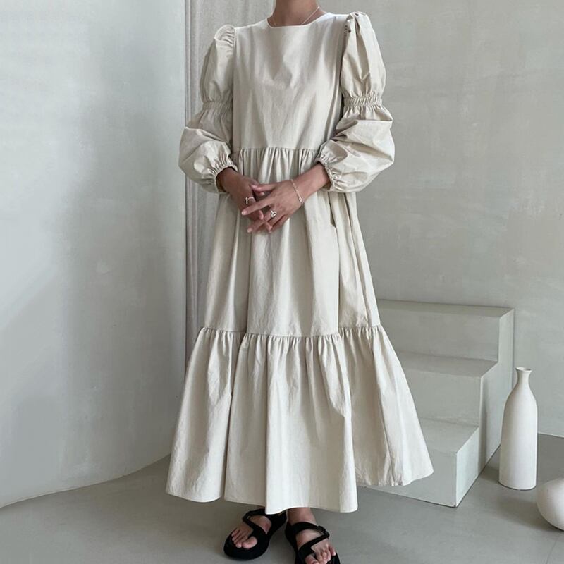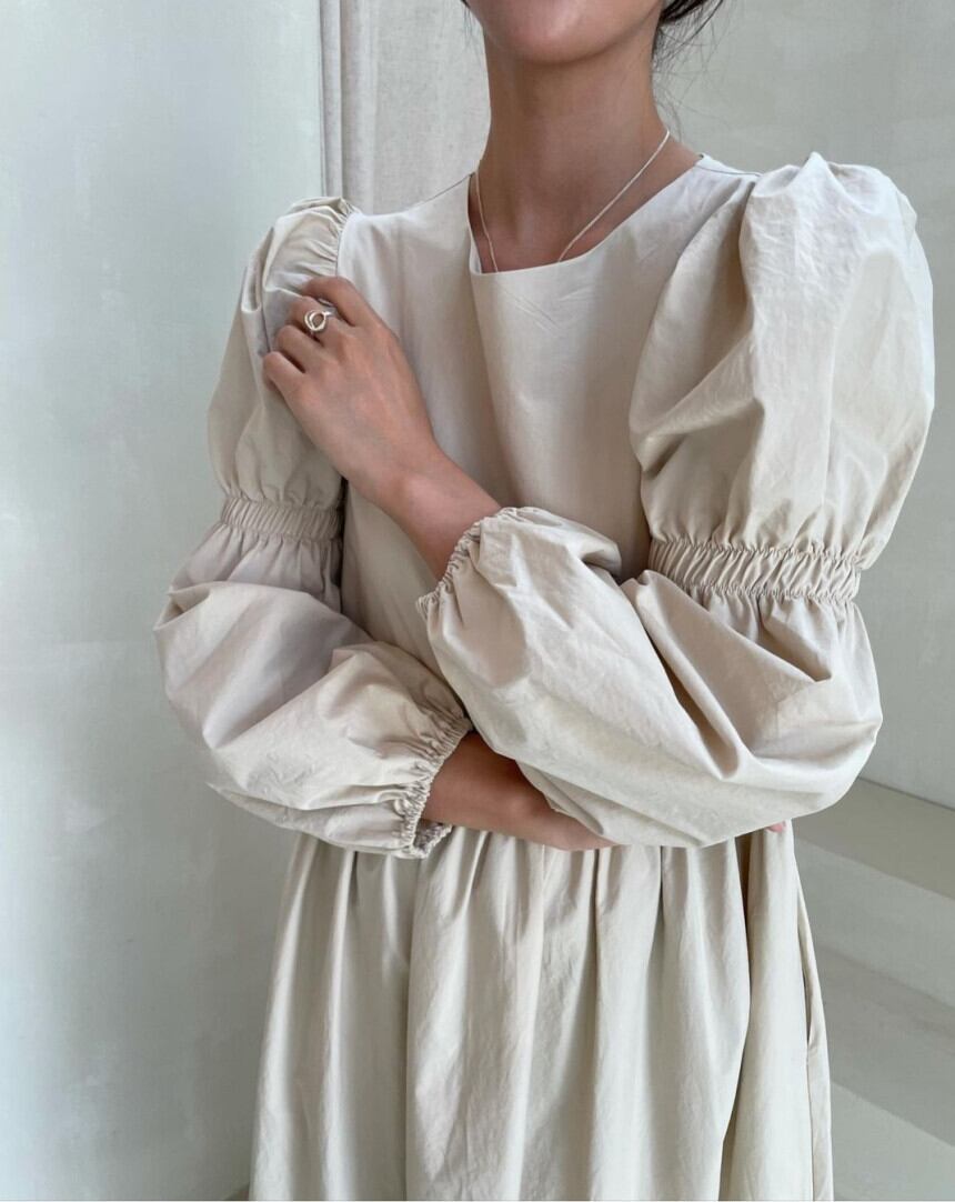 【韓国ファッション】大人可愛い スタンダードラウンドネックルーズソリッド カラースリーブドレス レトロ Oネック ソリッドカラー ♡ 韓国79638856690 | パリジェンヌ、韓国系ファッション July