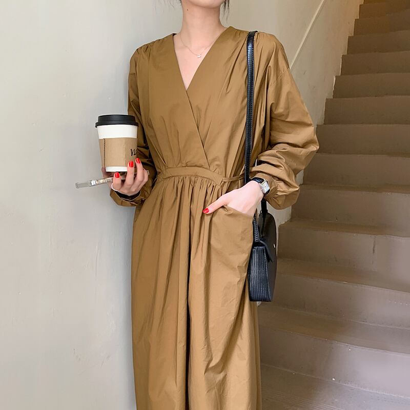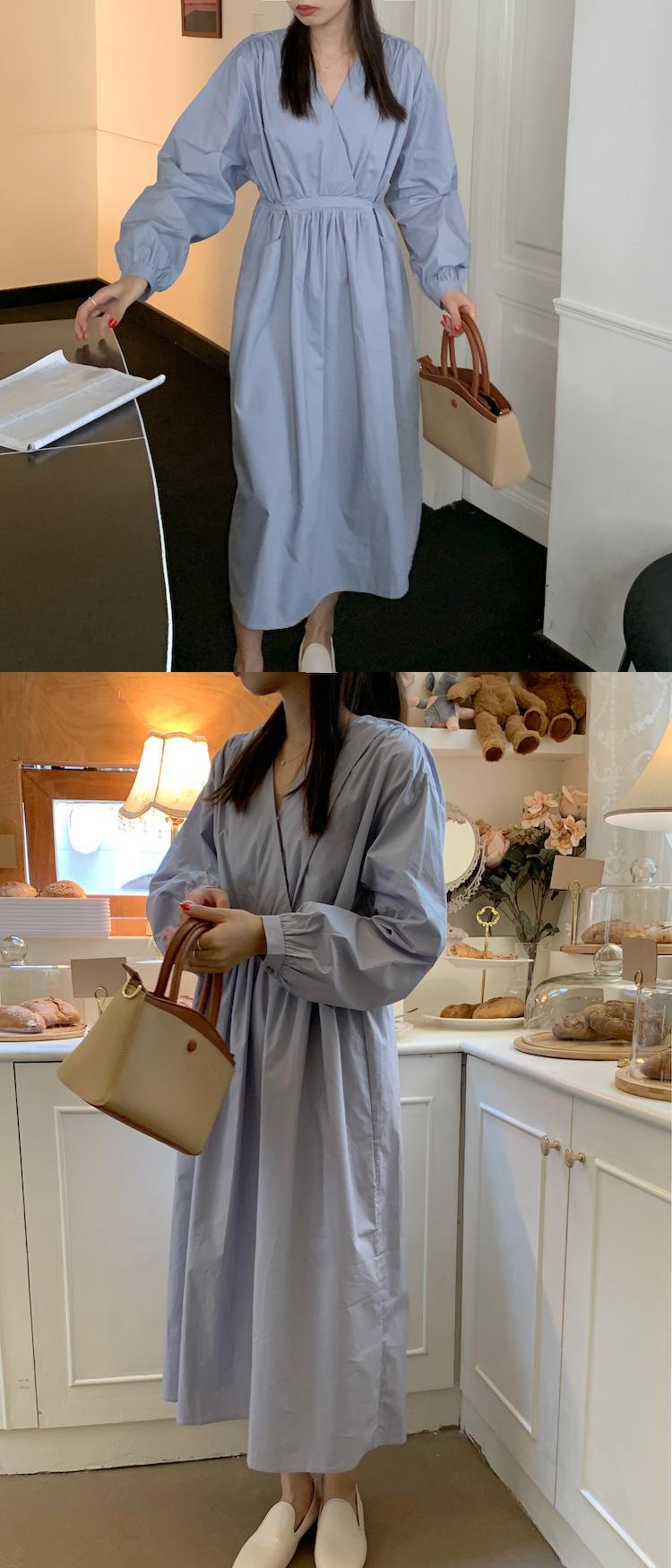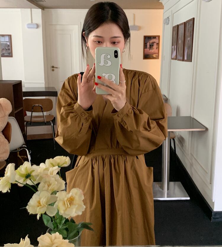 【韓国ファッション】大人可愛い オータムスタンダードクロスVネックプリーツレースウェストポケットスリーブドレス レトロ 秋物 ♡ 韓国35957859141 | パリジェンヌ、韓国系ファッション July
