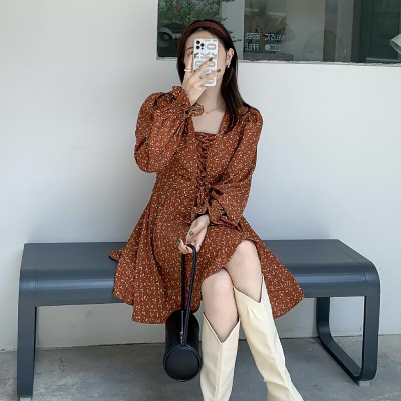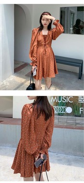 韓国服 オータムスタンダードレースフローラルシフォンスカート 薄手ドレス レディース ロング レトロ 秋物 花柄 ♡ nanfeng80312310930 | パリジェンヌ、韓国系ファッション July