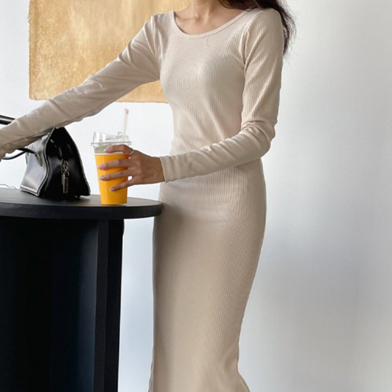 【韓国ファッション】大人可愛い スタンダードラウンドネックホルタースリムストライプニットドレス ロングスカート レトロ Oネック ♡ 韓国58916231543 | パリジェンヌ、韓国系ファッション July