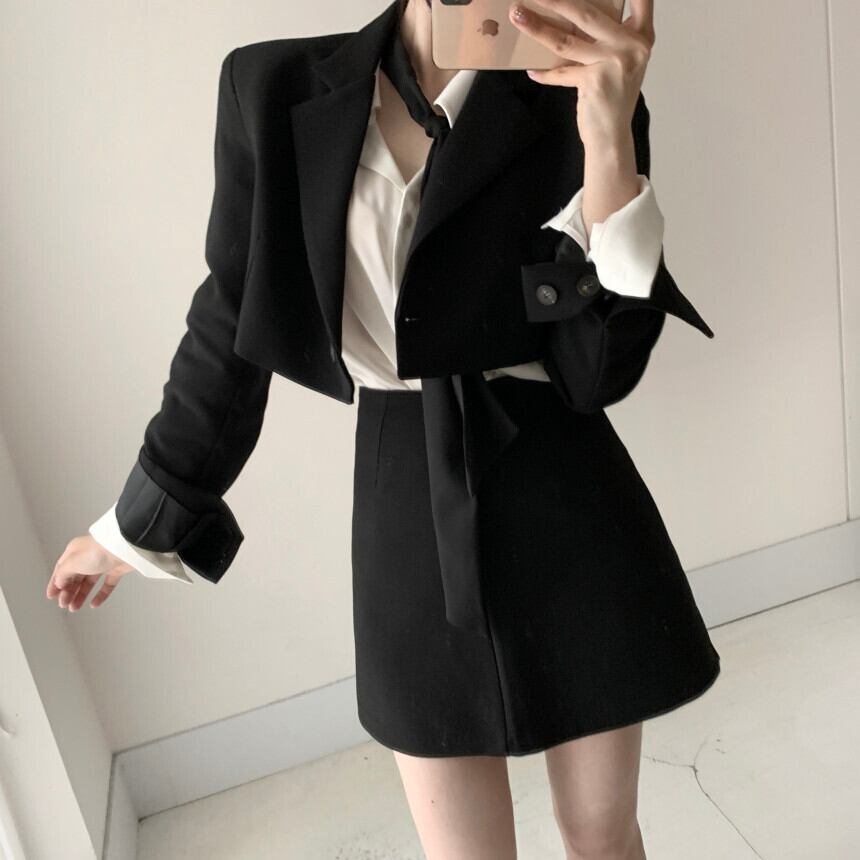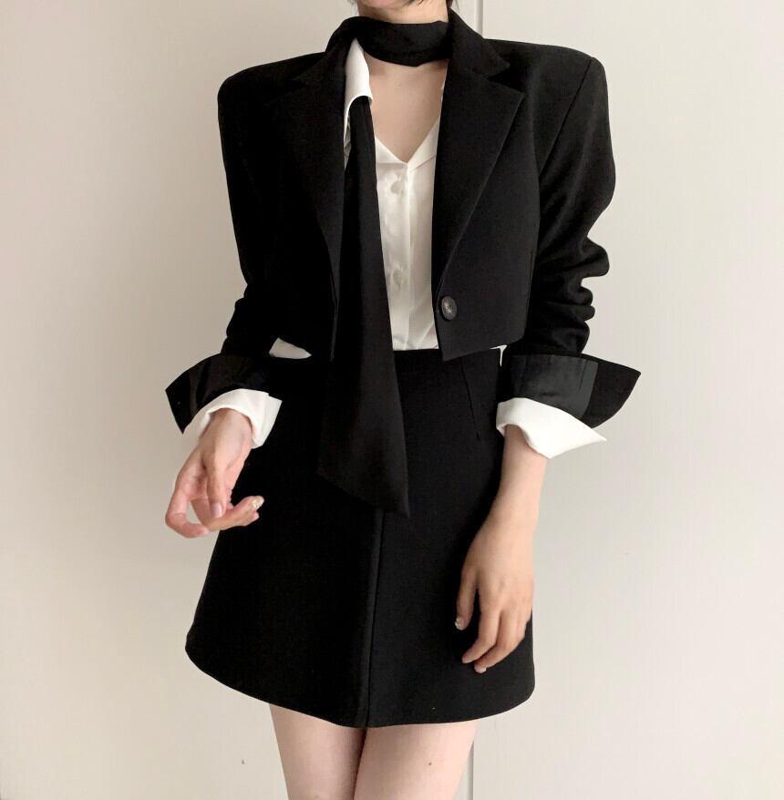 色:グレーのジャケットとスカート,黒のジャケットとスカート