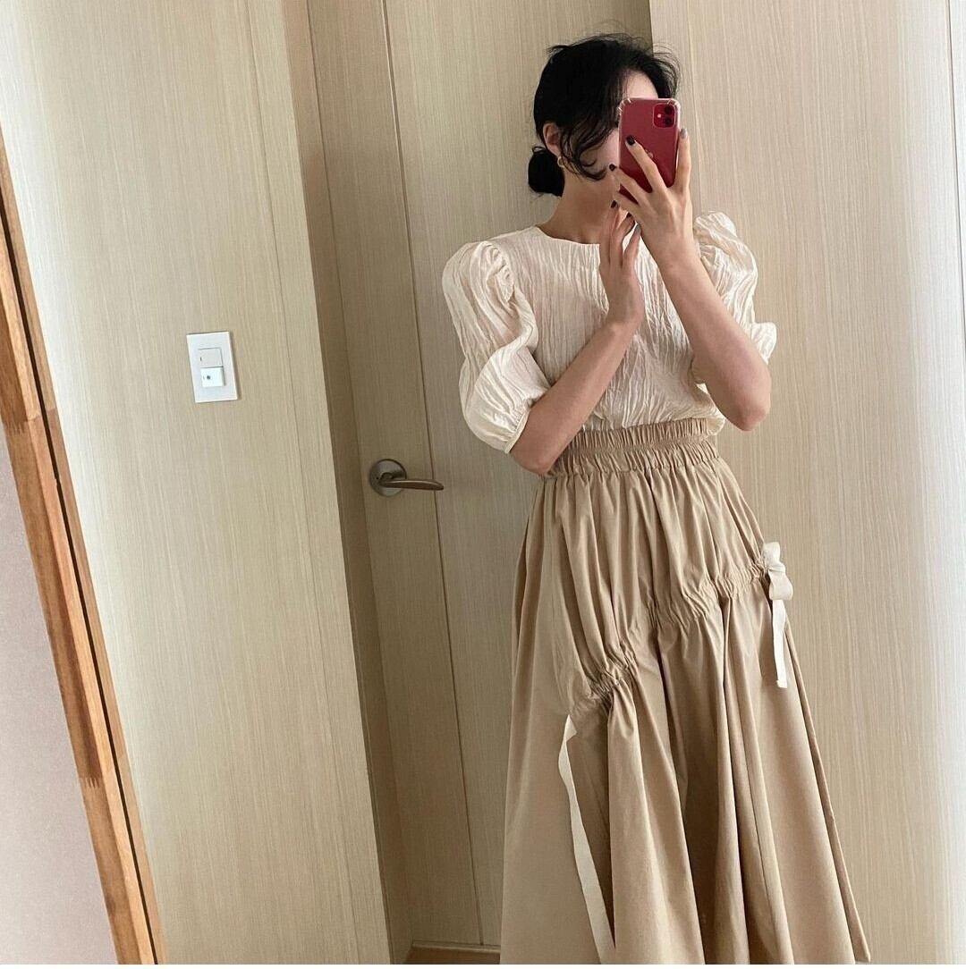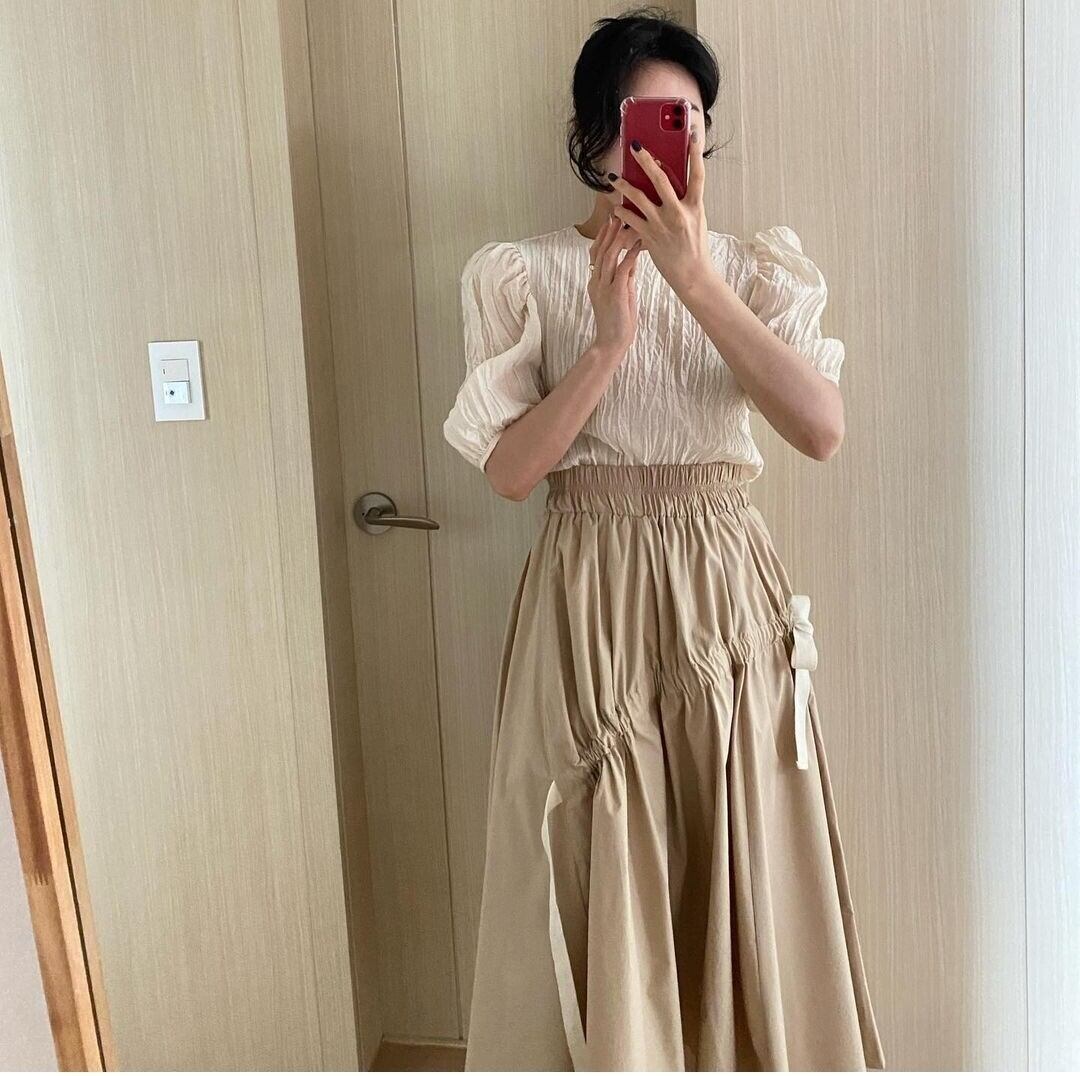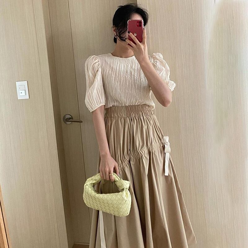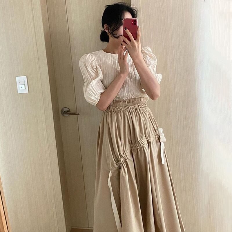 【韓国ファッション】大人可愛い サマーラウンドネックプリーツスリーブシャツ ハイウェストウェストギャザーレーススカート 夏物 Oネック ♡ 韓国9283287510 | パリジェンヌ、韓国系ファッション July