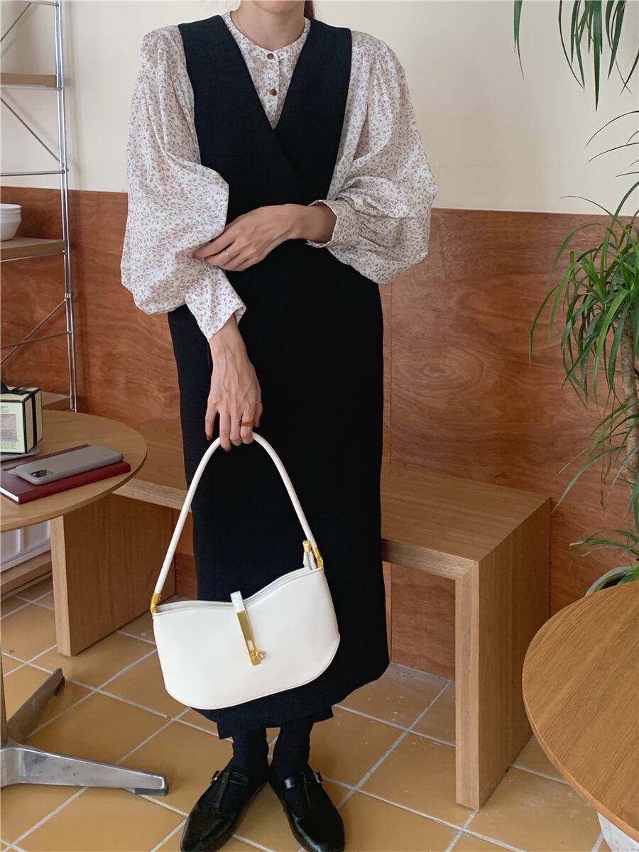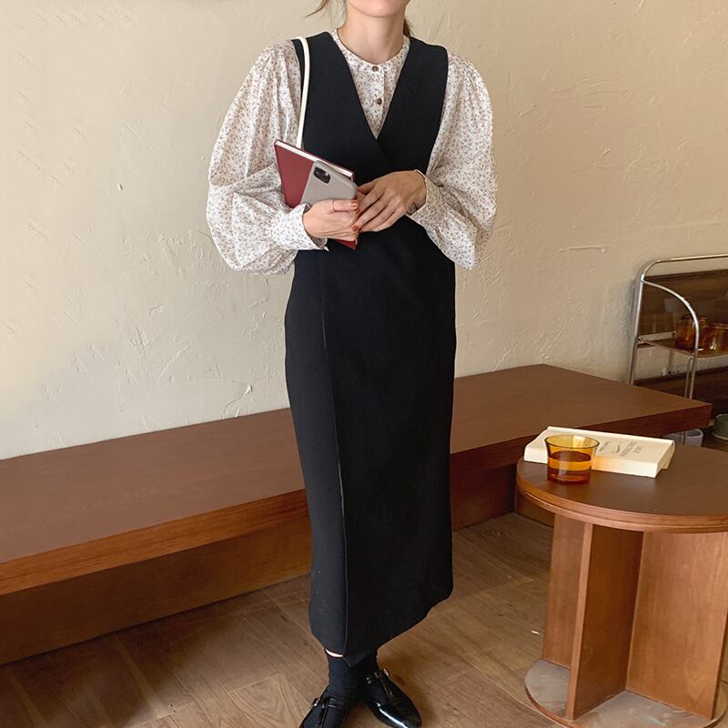【韓国ファッション】大人可愛い スタンダードフローラルスリーブシャツ クロスVネックウェストドレス レトロ エレガント 花柄 ♡ 韓国68400600301 | パリジェンヌ、韓国系ファッション July