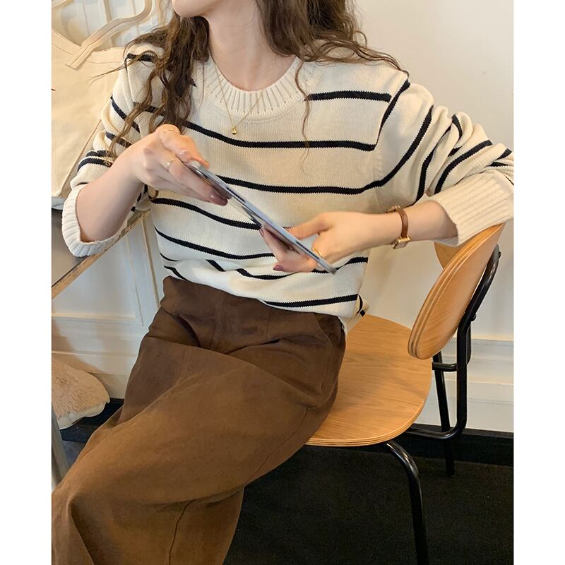韓国服 カラーセーター オータムラウンドネックルーズ薄手カジュアルプルオーバー レディース 秋物 Oネック ストライプ ソリッドカラー ♡ nanfeng39814974041 | パリジェンヌ、韓国系ファッション July