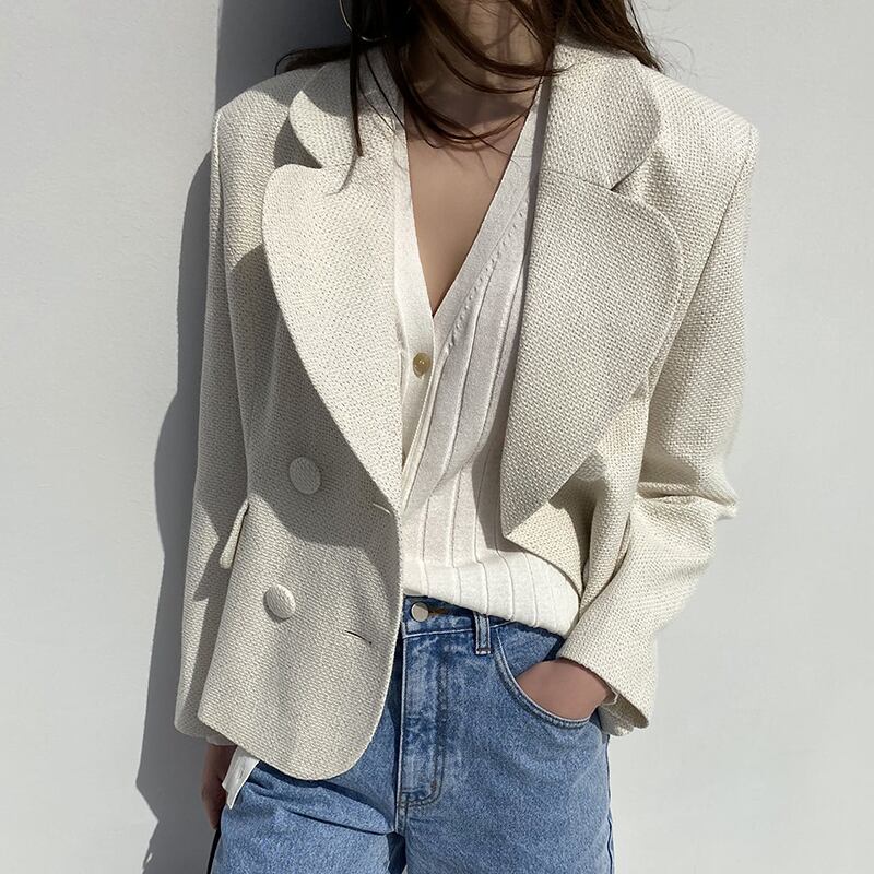 【韓国ファッション】大人可愛い オータムウィンタースタンダードダブルブレストルーズカーディガンツィードショートジャケット レディース ロング レトロ 秋物 冬物 ♡ 韓国45155169374 | パリジェンヌ、韓国系ファッション July