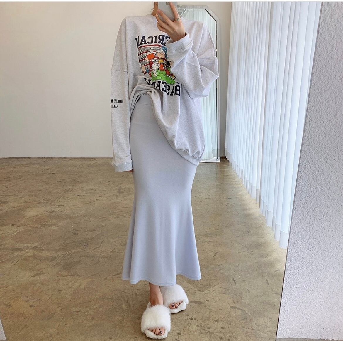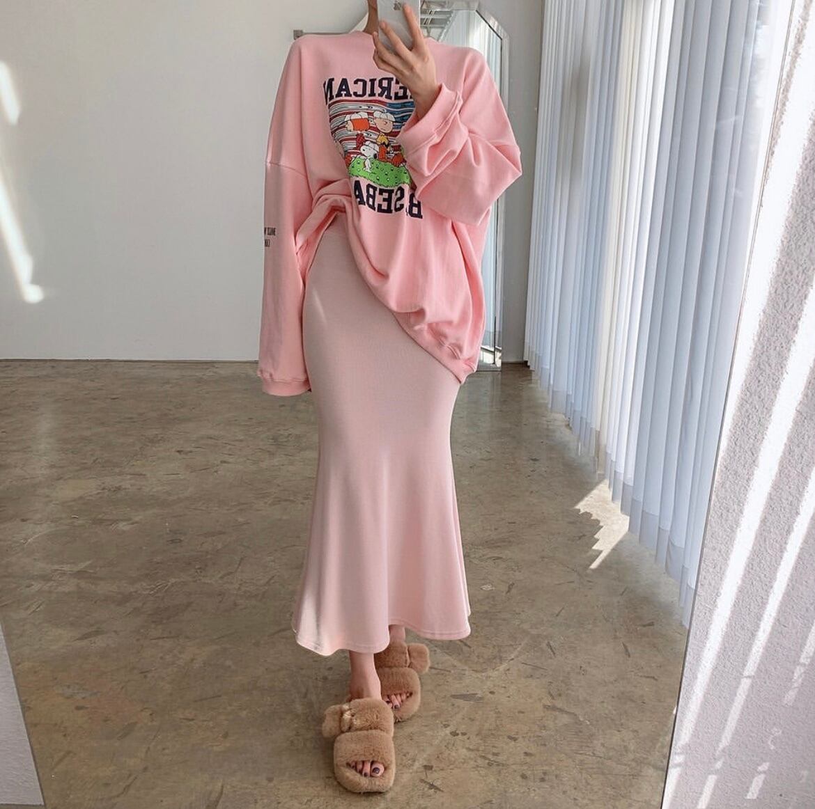 色:ピンクのセーター,ダークブルーのセーター,白いセーター,ライトグレーのスカート,ピンクのスカート,黒スカート