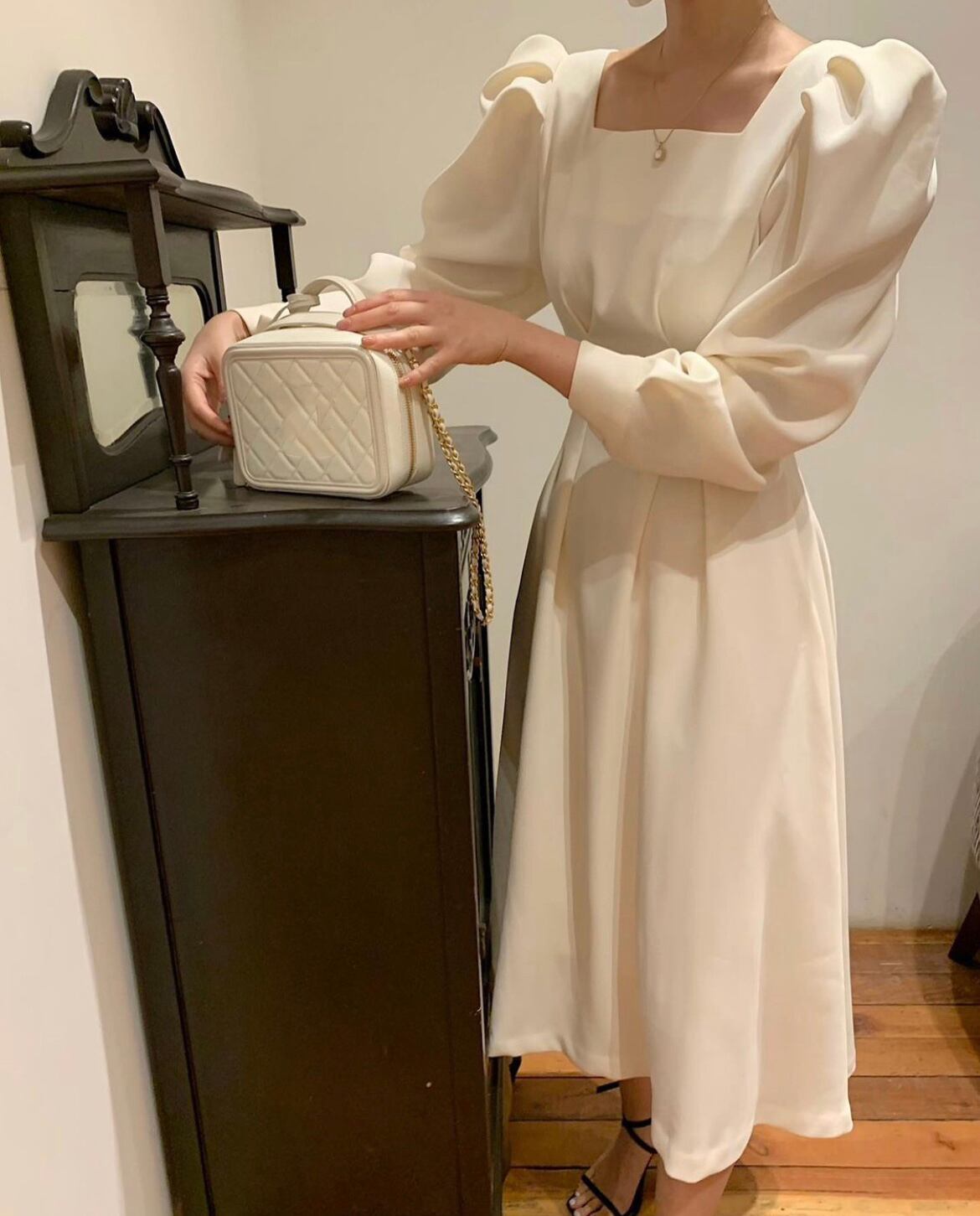 【韓国ファッション】大人可愛い オータムスタイル薄手カラープリーツウェストスリーブドレス レディース エレガント 秋物 スクウェア ♡ 韓国5240014267 | パリジェンヌ、韓国系ファッション July