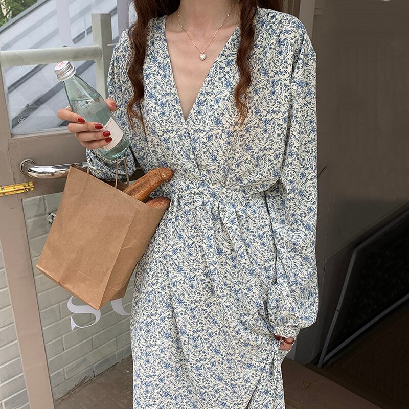 【韓国ファッション】大人可愛い オータムスタンダードVネックフローラルレースウェストダブルポケットドレス レディース ロング レトロ 秋物 花柄 ♡ 韓国25991768719 | パリジェンヌ、韓国系ファッション July