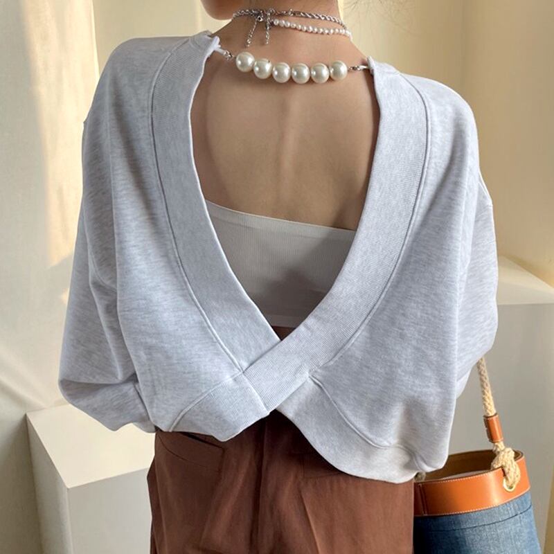 【韓国ファッション】大人可愛い オータムラウンドネックバックパールチェーン ルーズプルオーバー スリーブセーター 秋物 Oネック 真珠 ♡ 韓国91872953083 | パリジェンヌ、韓国系ファッション July