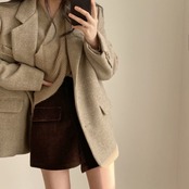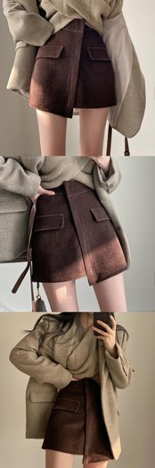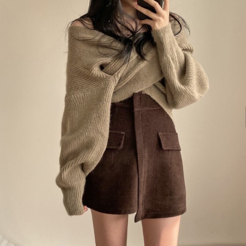 色:カーキ色のセーター,茶色のスカート,黒いセーター,黒スカート