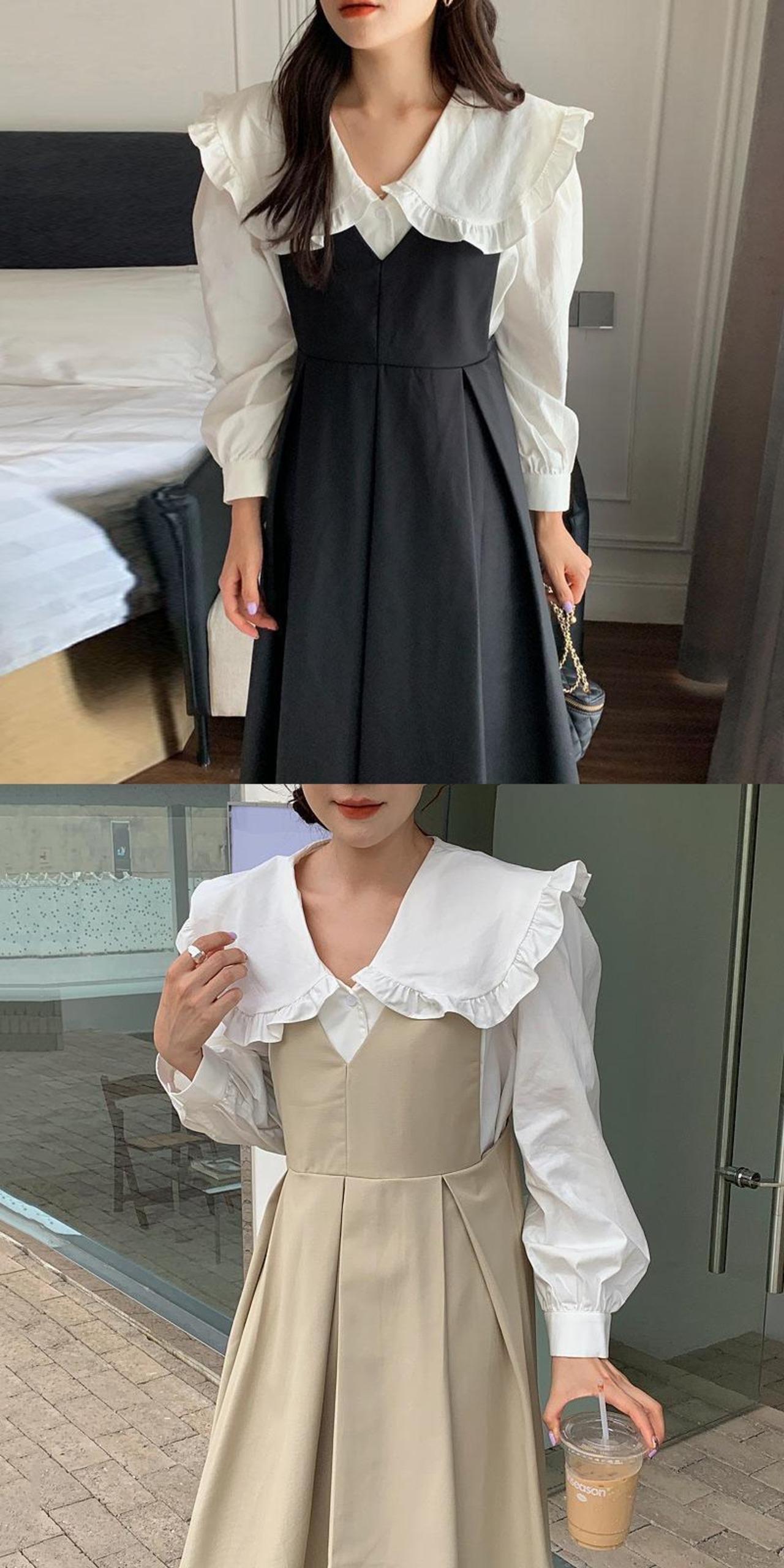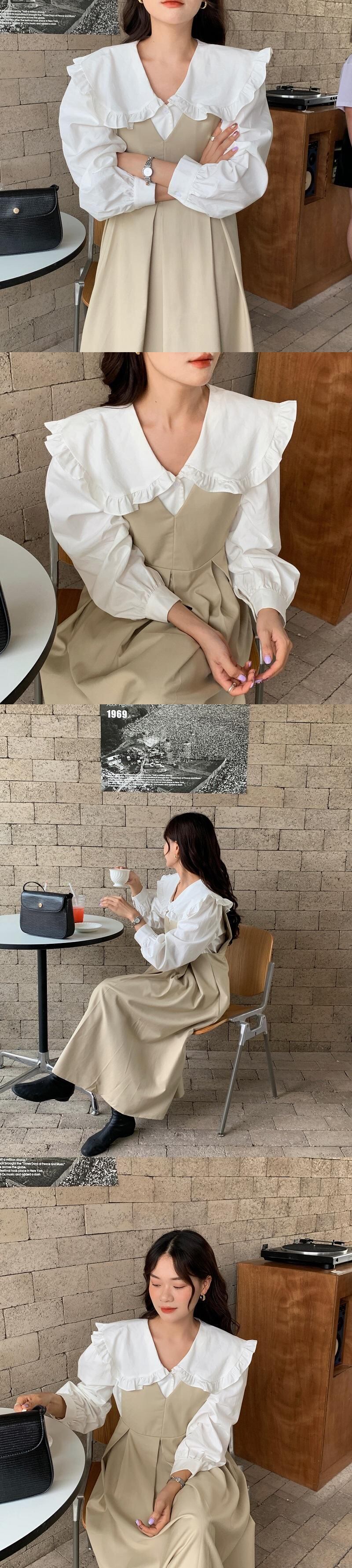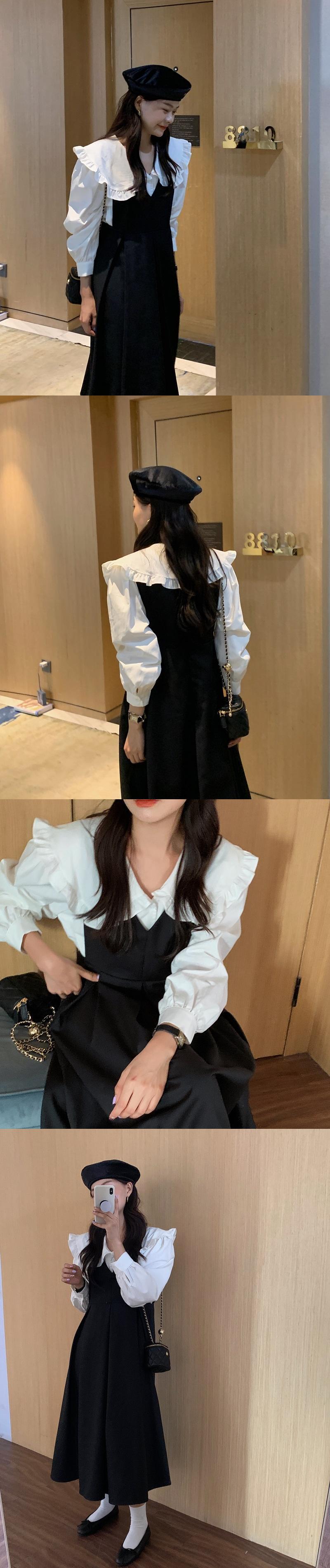 色:白のシャツ,黒のタンクスカート,アプリコットベスト