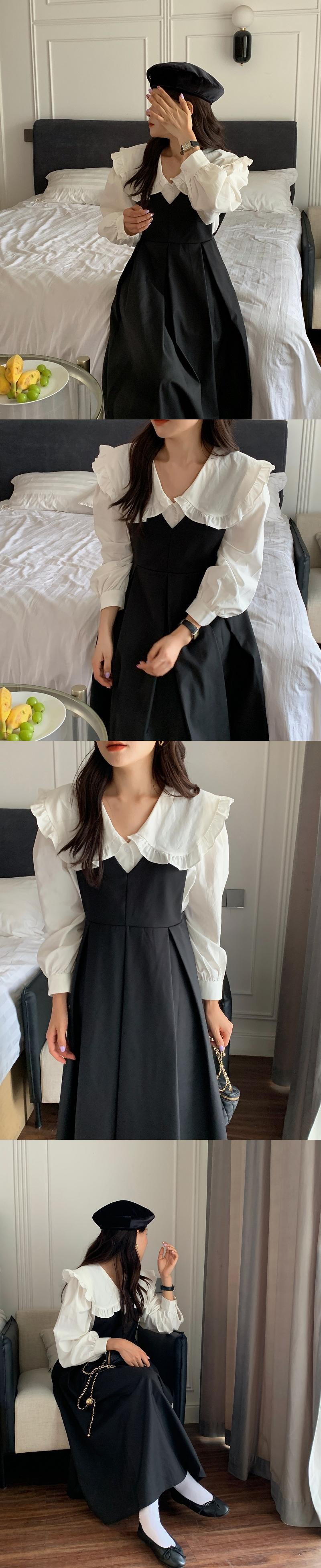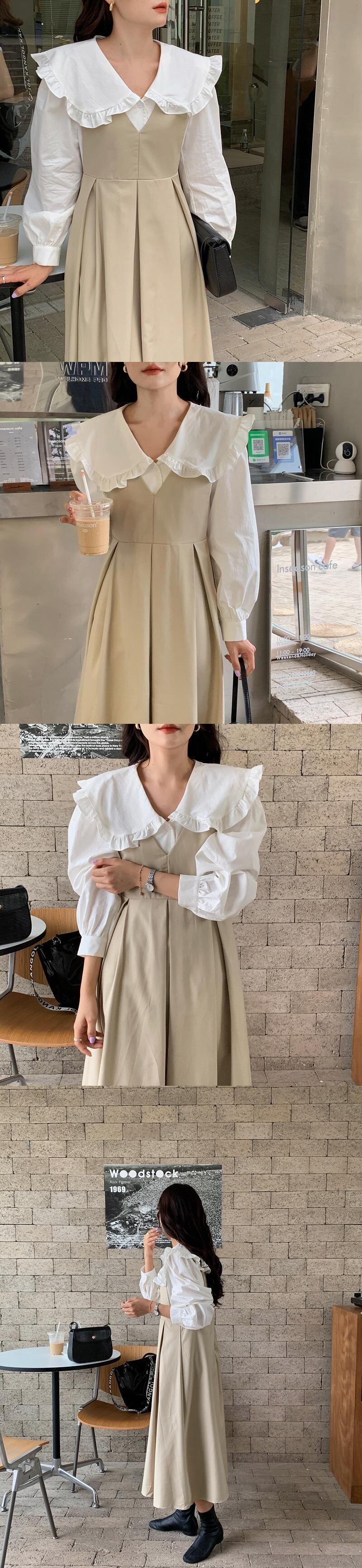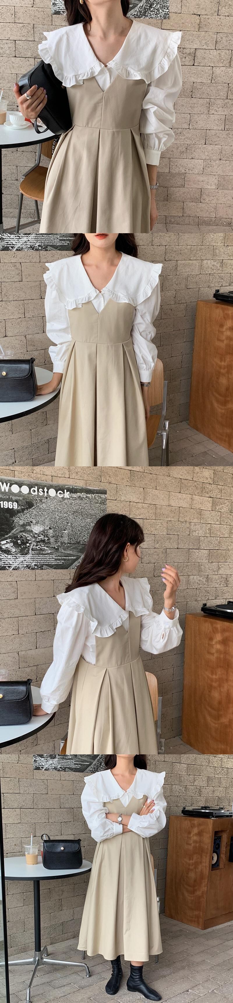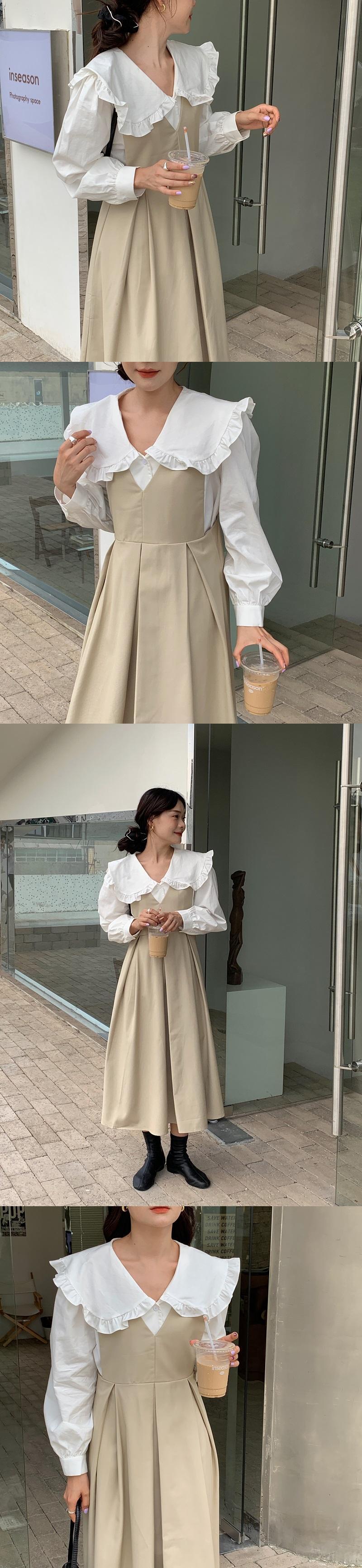 色:白のシャツ,黒のタンクスカート,アプリコットベスト