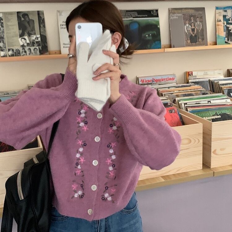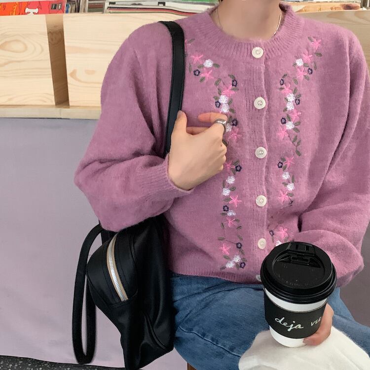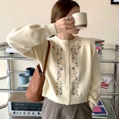 【韓国ファッション】大人可愛い オータムラウンドネック刺繍Flowerデザイン ルーズシングルブレストスリーブセーター ジャケット レディース 秋物 Oネック フラワーデザイン ♡ 韓国41903744834 | パリジェンヌ、韓国系ファッション July