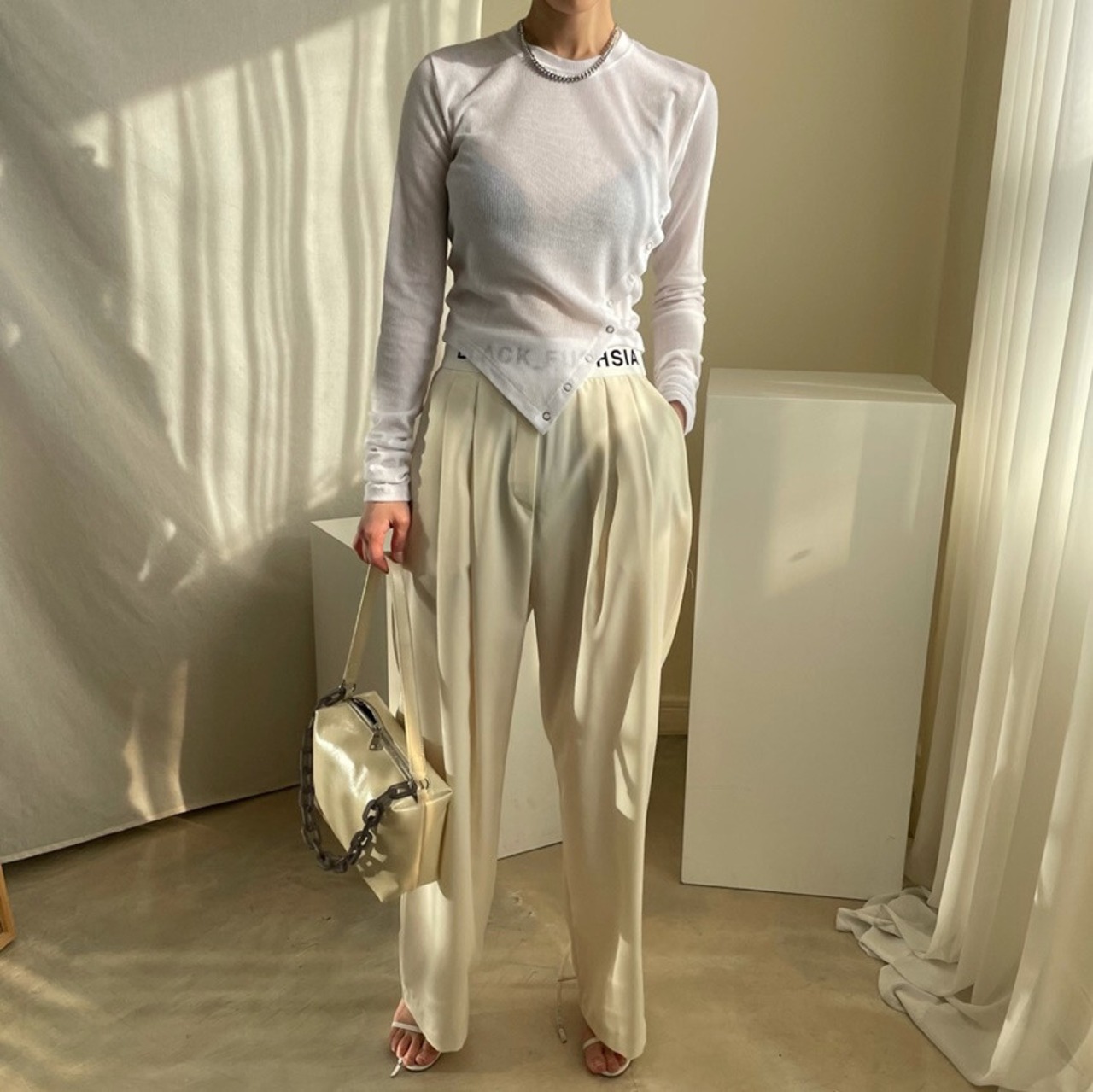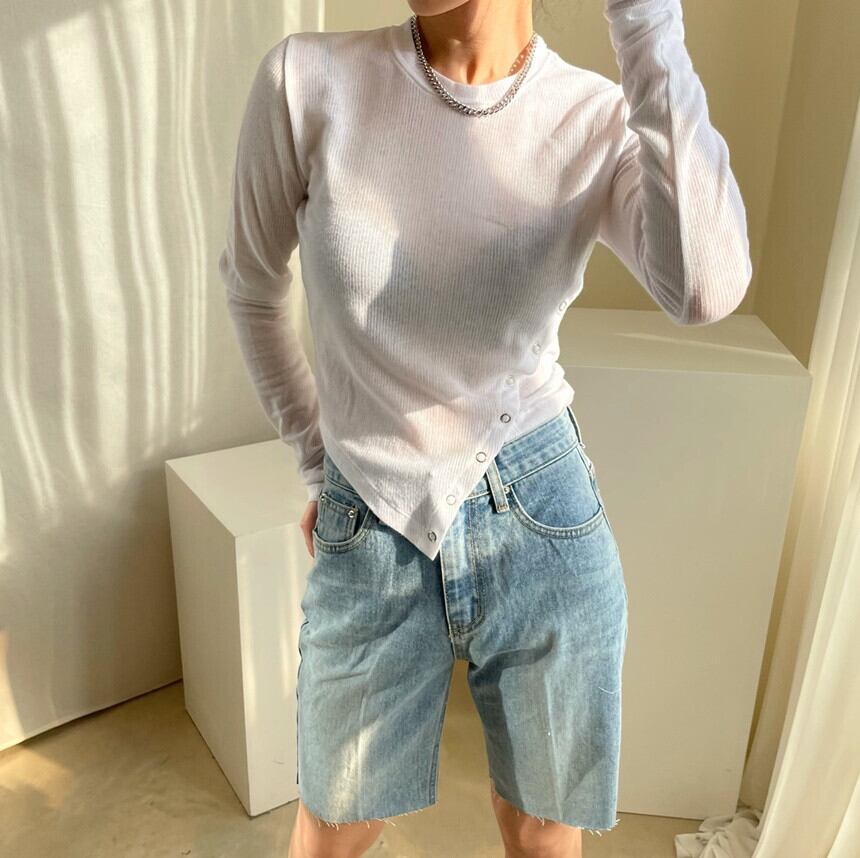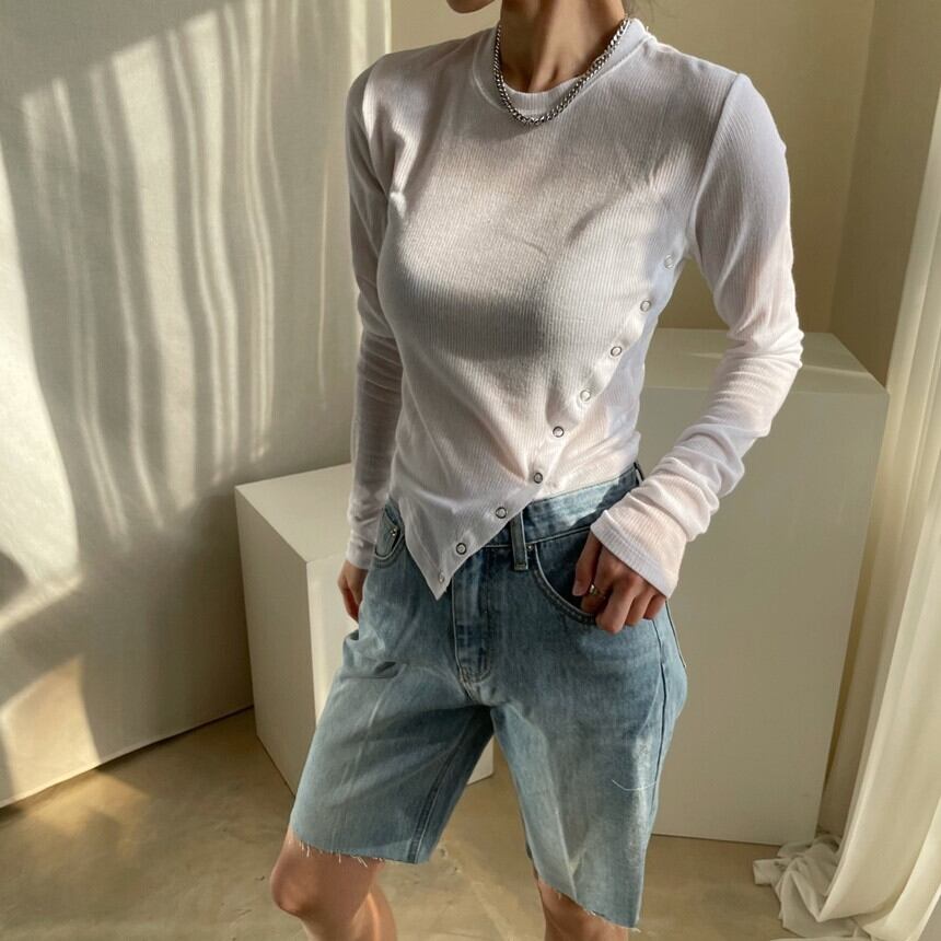 【韓国ファッション】大人可愛い オータムラウンドネックプルオーバー スリムサイドバックルTシャツ トップス ロング 秋物 Oネック ♡ 韓国86322713443 | パリジェンヌ、韓国系ファッション July