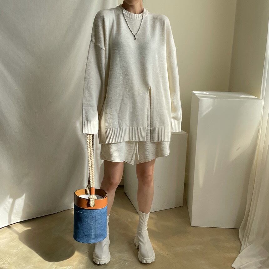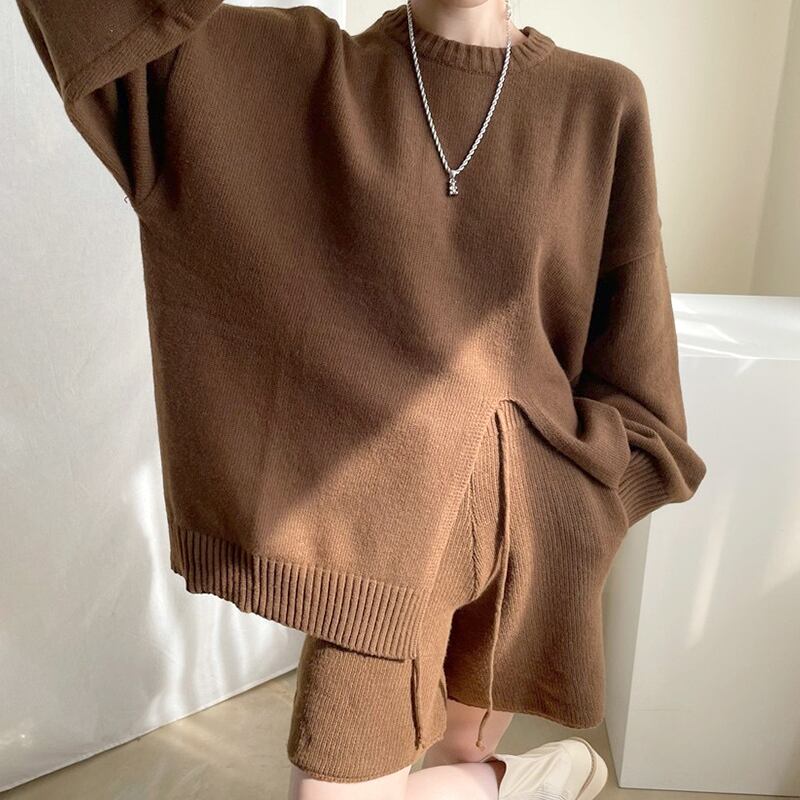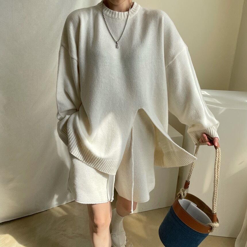 【韓国ファッション】大人可愛い ラウンドネックルーズセーター ニットカジュアルパンツ ショーツ ロング ブルマー Oネック ♡ 韓国3287386309 | パリジェンヌ、韓国系ファッション July
