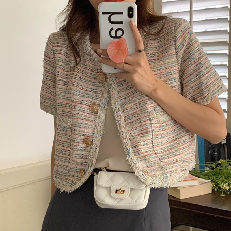 【韓国ファッション】大人可愛い スタンダードラウンドネックメタルバックルルーズツィードショートジャケット レディース レトロ Oネック ステッチ ♡ 韓国42964911989 | パリジェンヌ、韓国系ファッション July