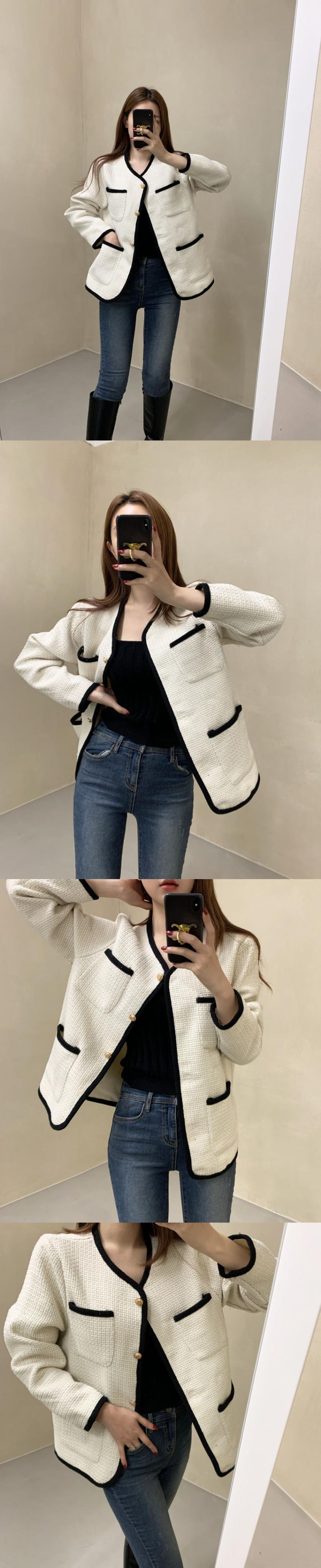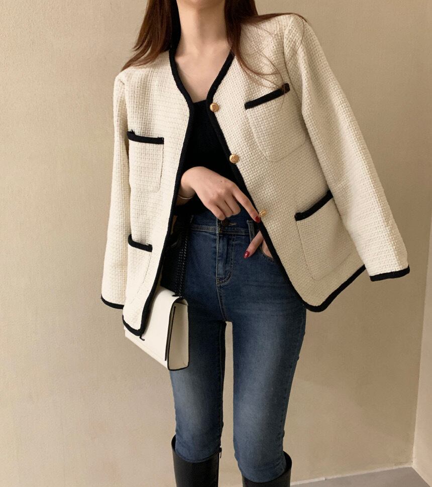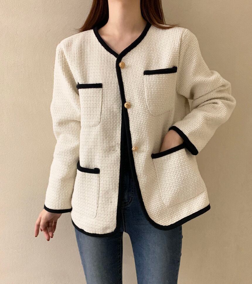 【韓国ファッション】大人可愛い ラウンドネックカラールーズツィードショートジャケット レディース Oネック ポケット多め マルチポケット ♡ 韓国92650081816 | パリジェンヌ、韓国系ファッション July