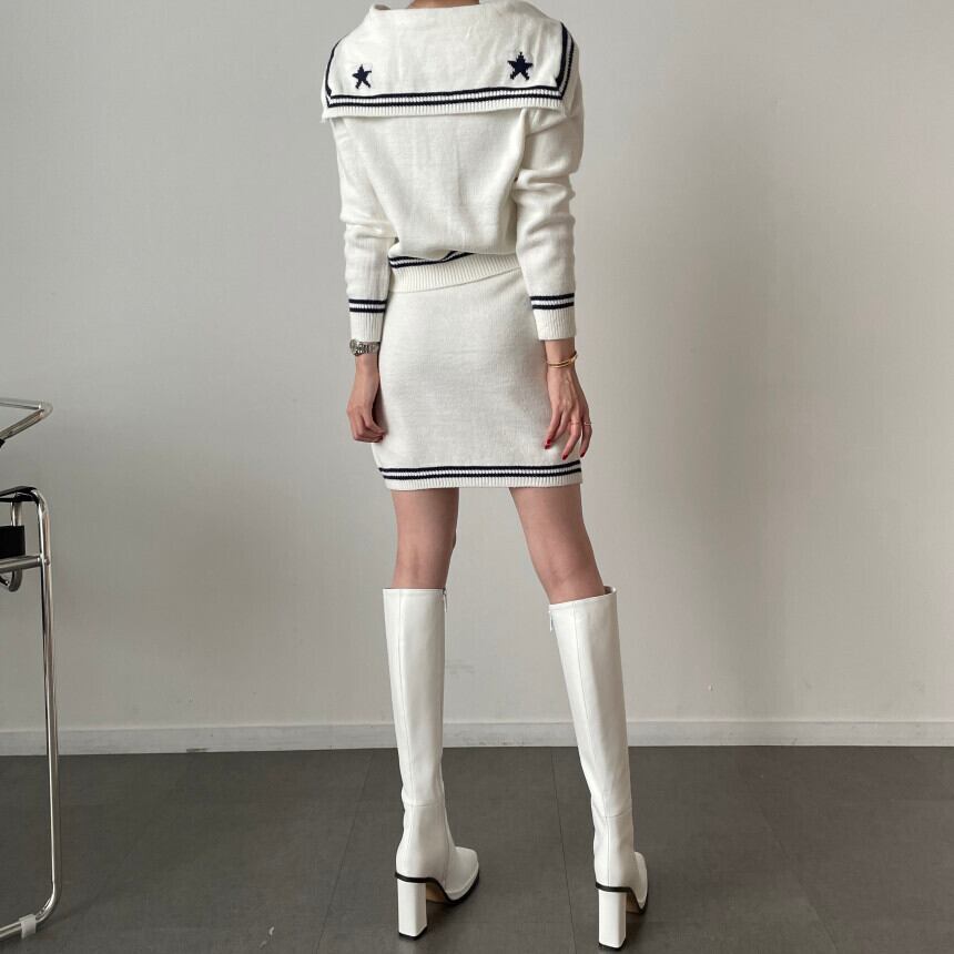 色:白いコート,白いスカート,ネイビーコート,ネイビーブルーのスカート