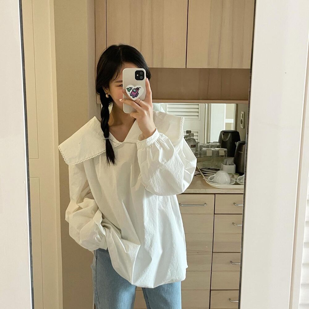 【韓国ファッション】大人可愛い レースルーズソリッド カラースリーブプルオーバー シャツ トップス ソリッドカラー ステッチ ♡ 韓国46491541845 | パリジェンヌ、韓国系ファッション July