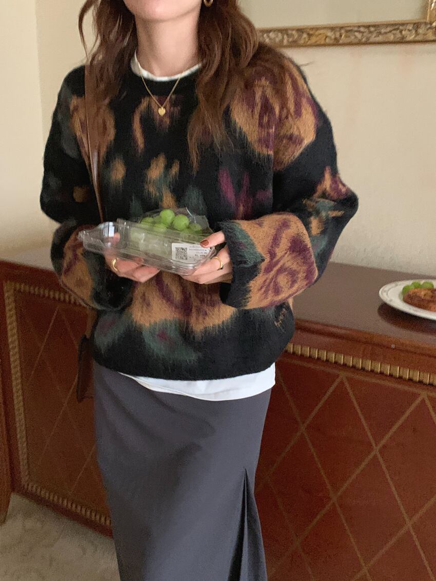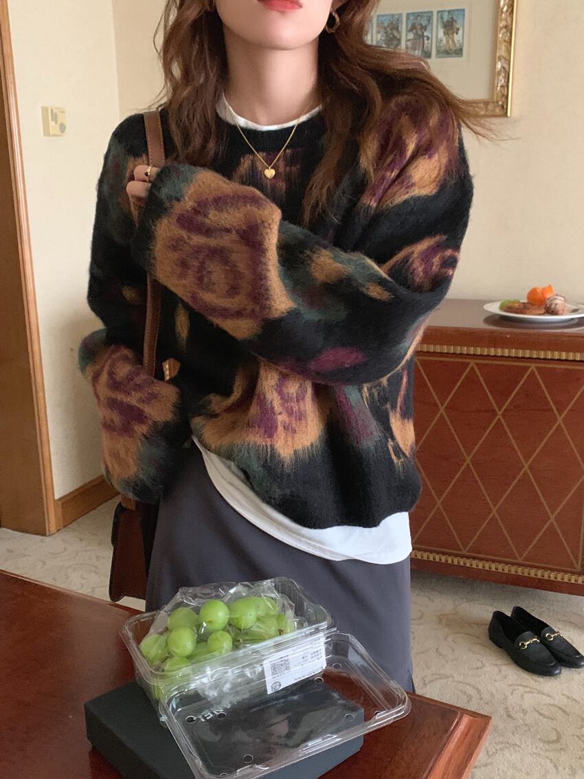 【韓国ファッション】大人可愛い オータムスタンダードラウンドネックFlowerデザイン ルーズニットセーター レディース ロング レトロ 秋物 Oネック フラワーデザイン ♡ 韓国37262173602 | パリジェンヌ、韓国系ファッション July