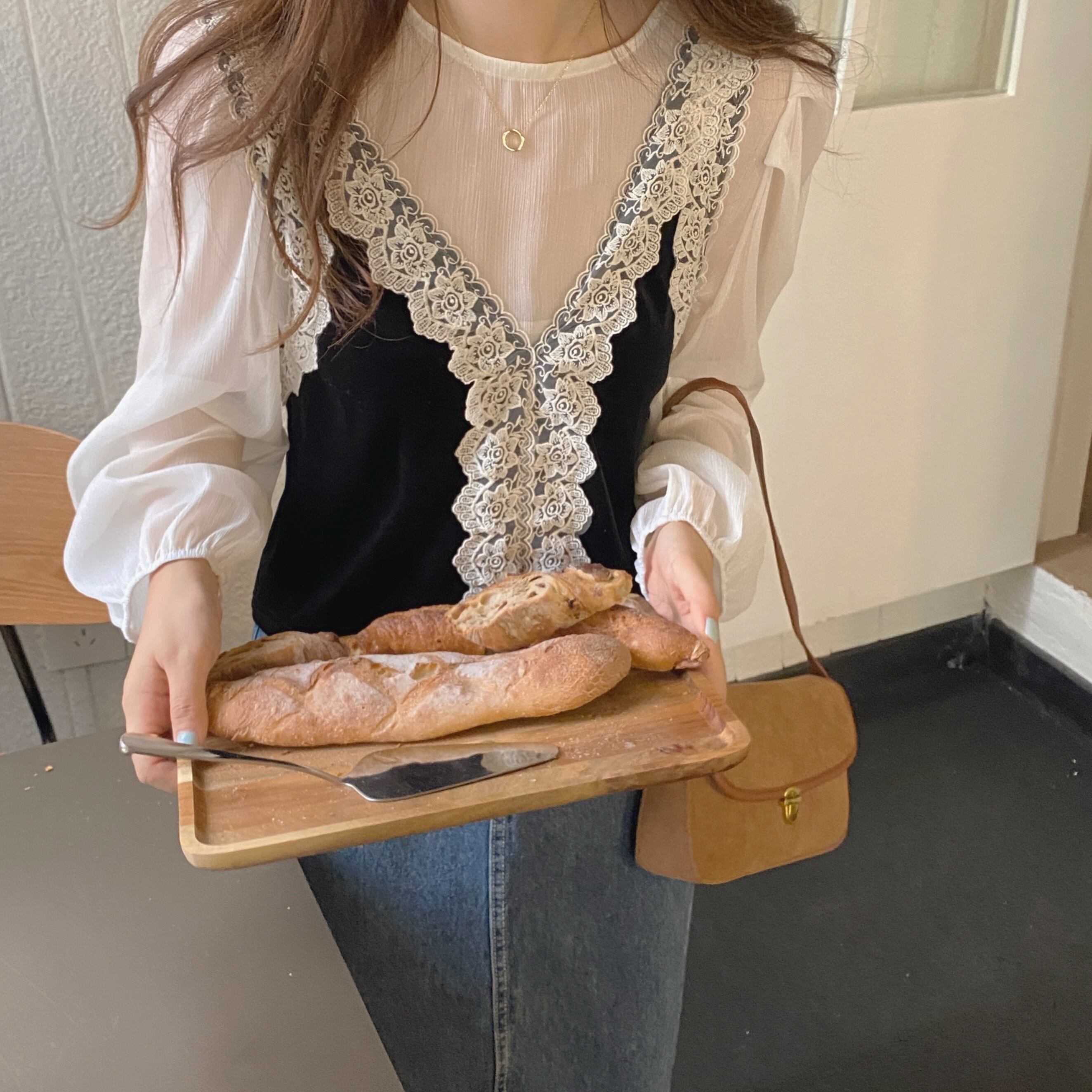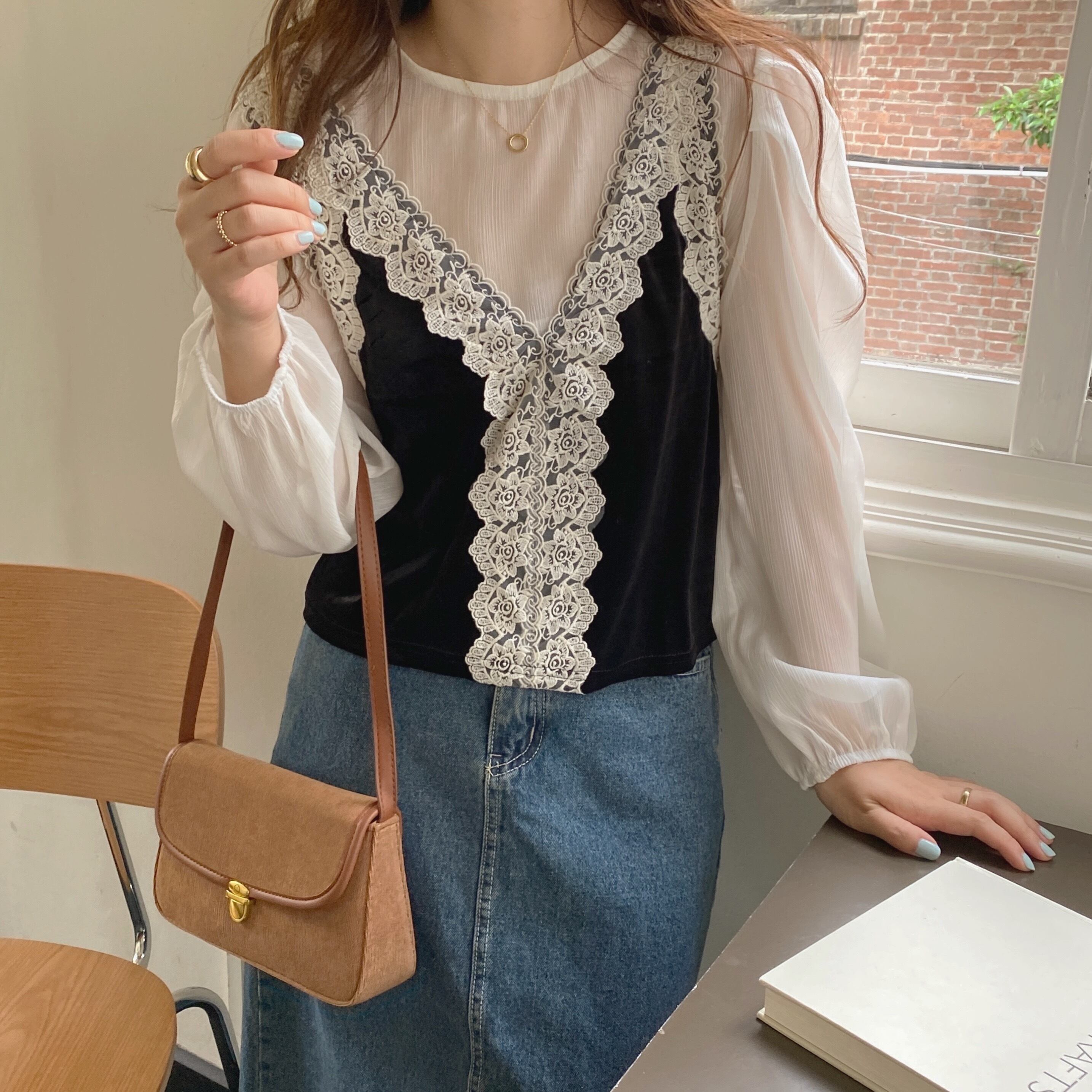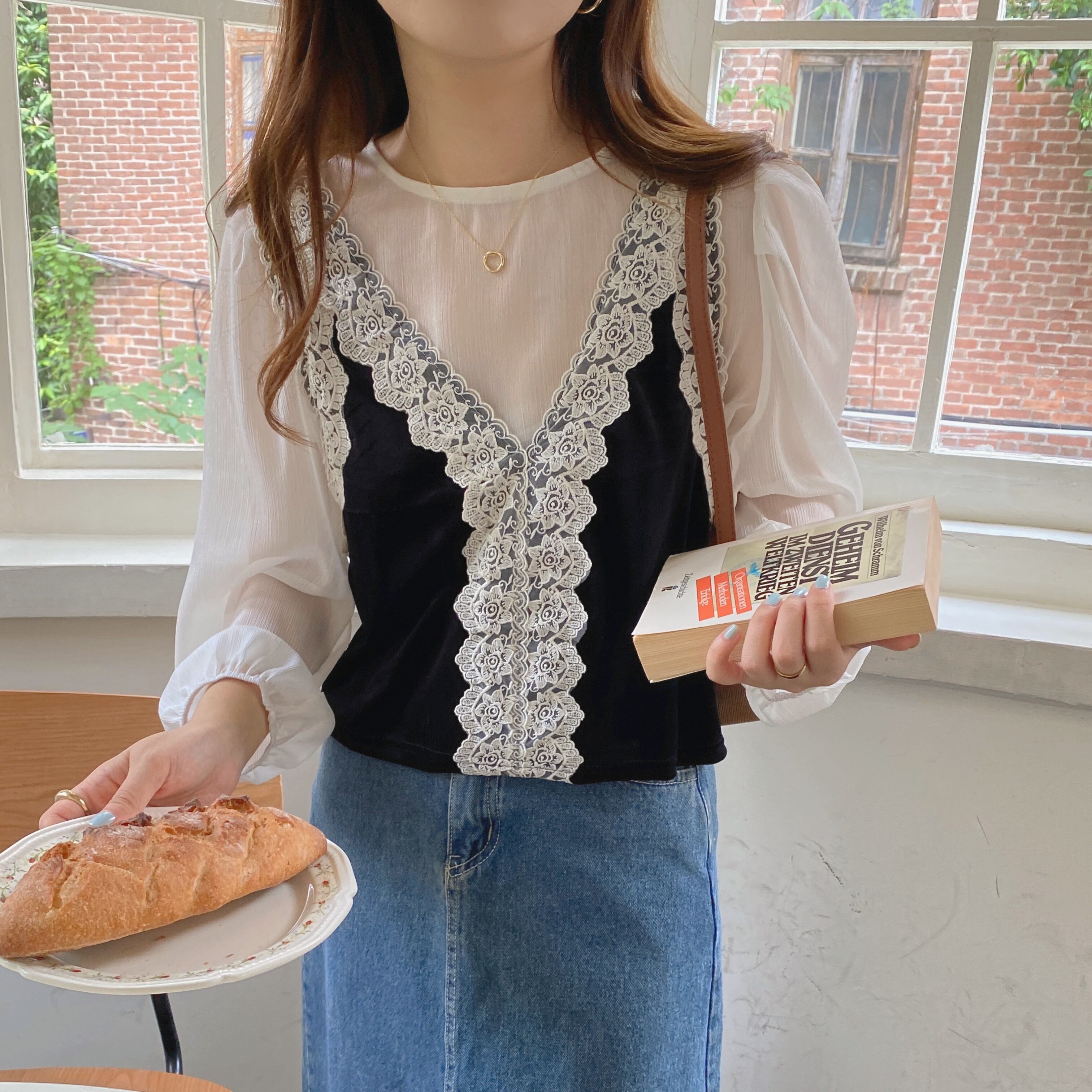 【韓国ファッション】大人可愛い スタンダードVネックレースラウンドネックルーズ薄手シャツ ロング レトロ Oネック ステッチ ♡ 韓国15863040221 | パリジェンヌ、韓国系ファッション July