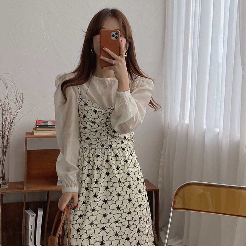 韓国服 オータムカラー長袖スリーブラウンドネックシャツ トップス フローラルスカート ロング 秋物 花柄 Oネック ピュア ♡ nanfeng12528817745 | パリジェンヌ、韓国系ファッション July
