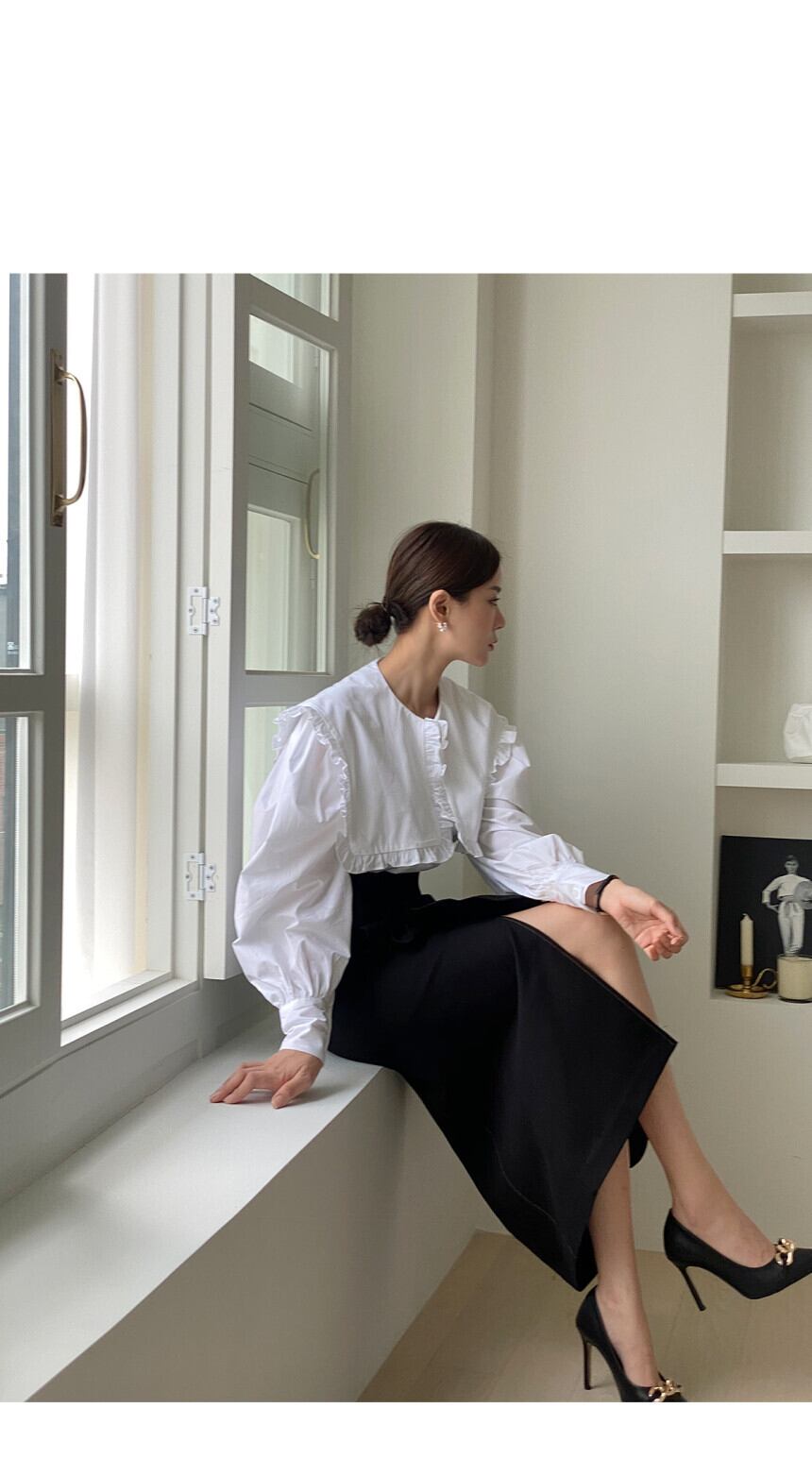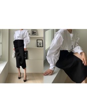 色:白のシャツ,ブラックスカートSサイズ,黒スカートM