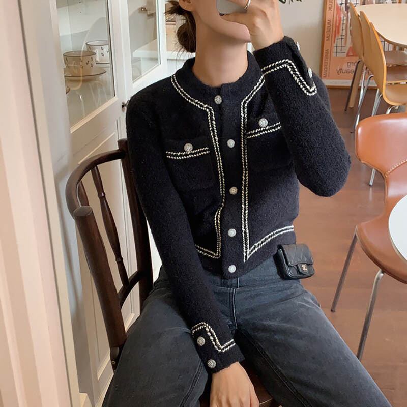 韓国服 ニットカーディガンスプリングオータムカラーラウンドネックコート ジャケット ロング 春物 秋物 Oネック ステッチ ♡ nanfeng96949832346 | パリジェンヌ、韓国系ファッション July