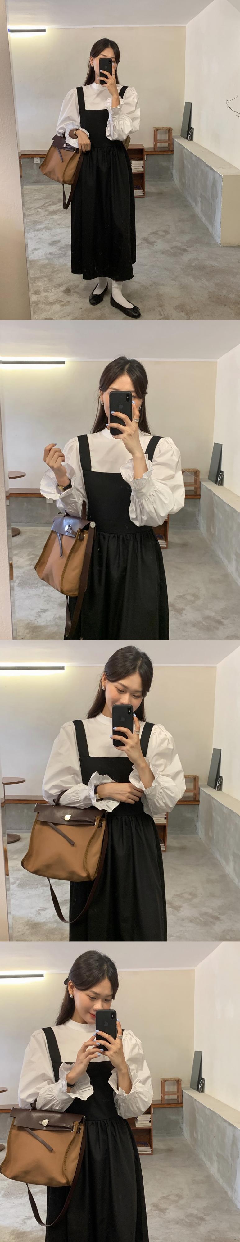 色:白のシャツ,アプリコットシャツ,黒のタンクスカート,コーヒー色のタンクスカート
