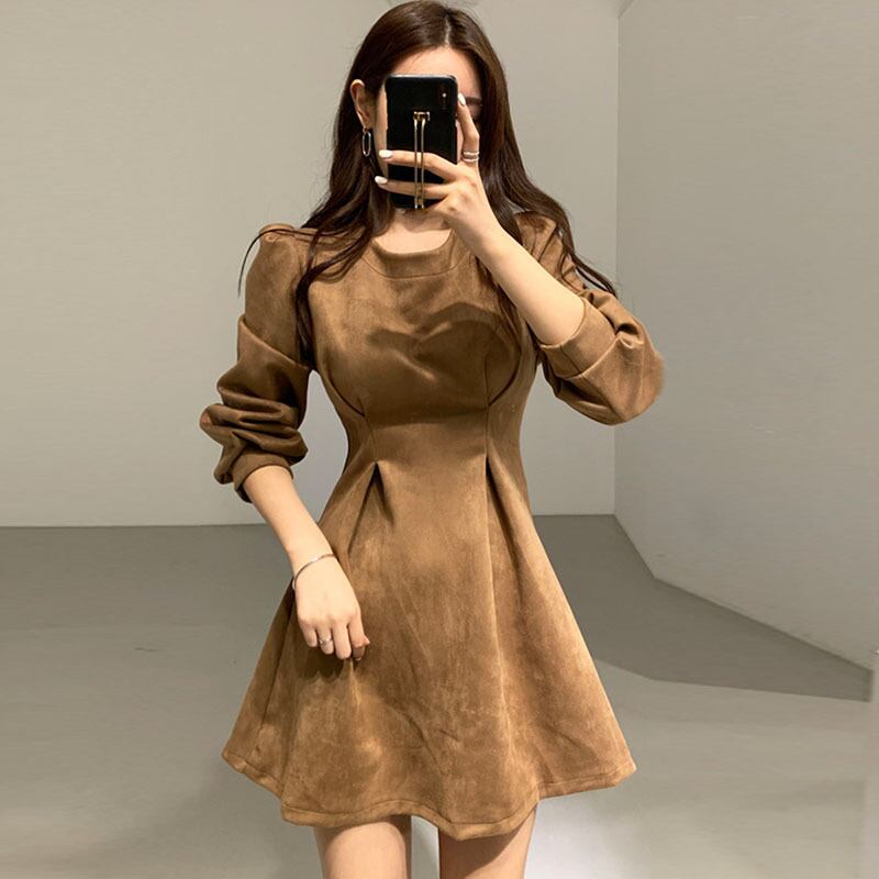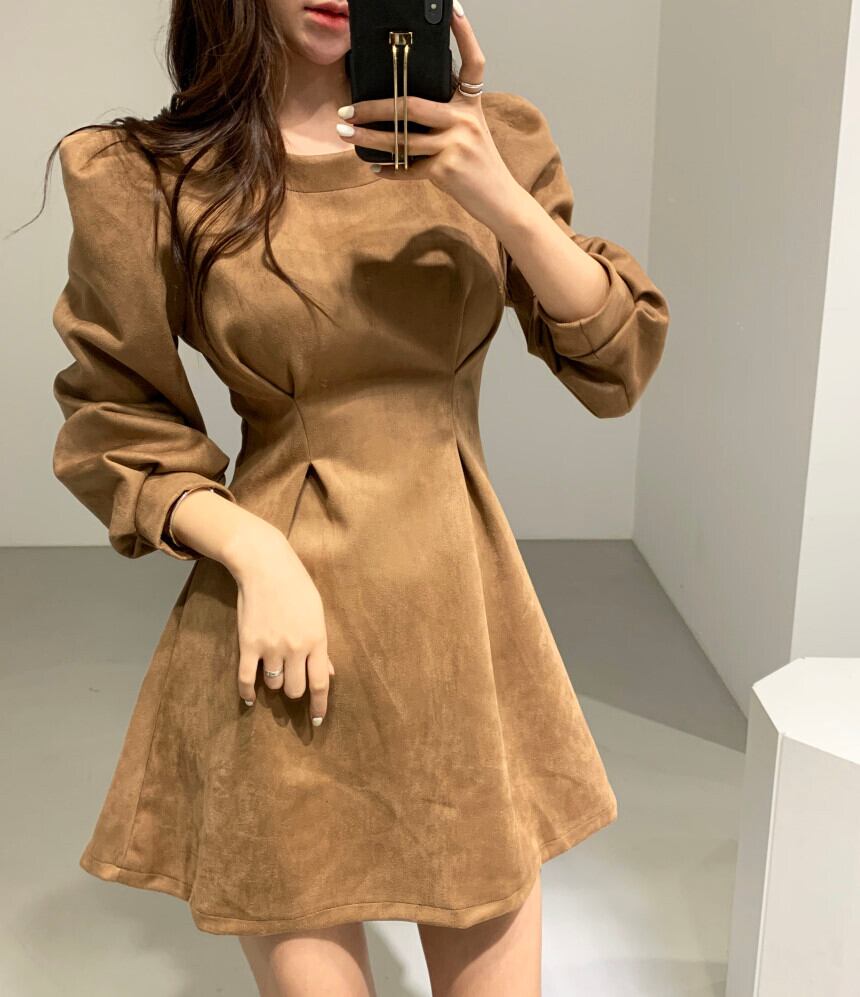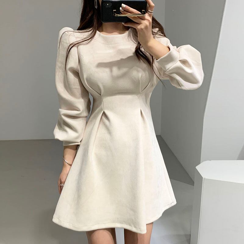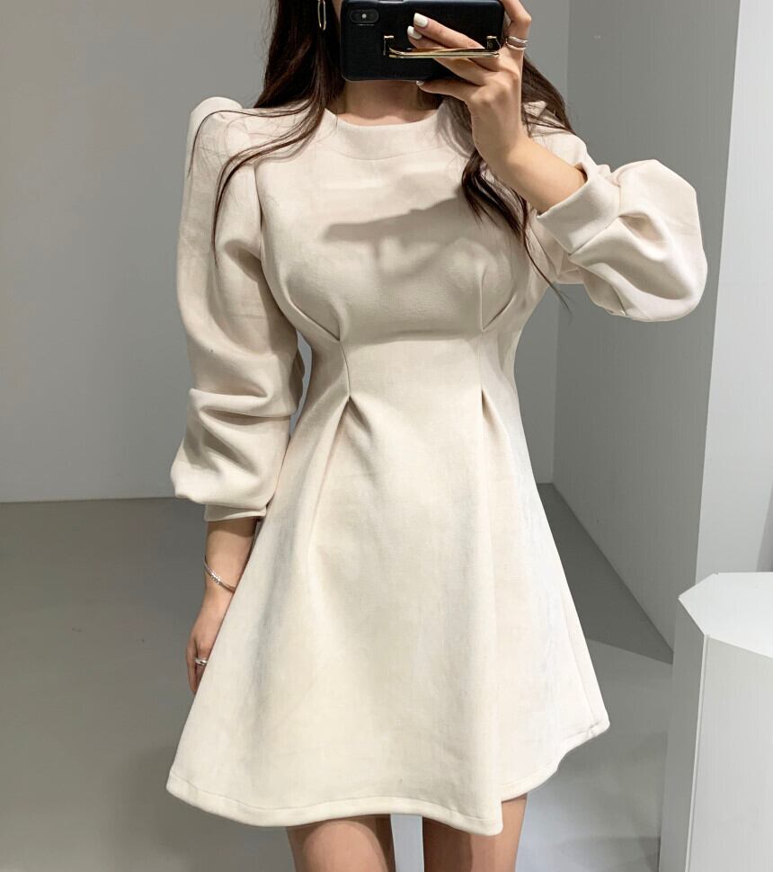 【韓国ファッション】大人可愛い オータムウィンターラウンドネックウェストスリム薄手スリーブドレス ショートスカート エレガント 秋物 冬物 Oネック ♡ 韓国56871260777 | パリジェンヌ、韓国系ファッション July