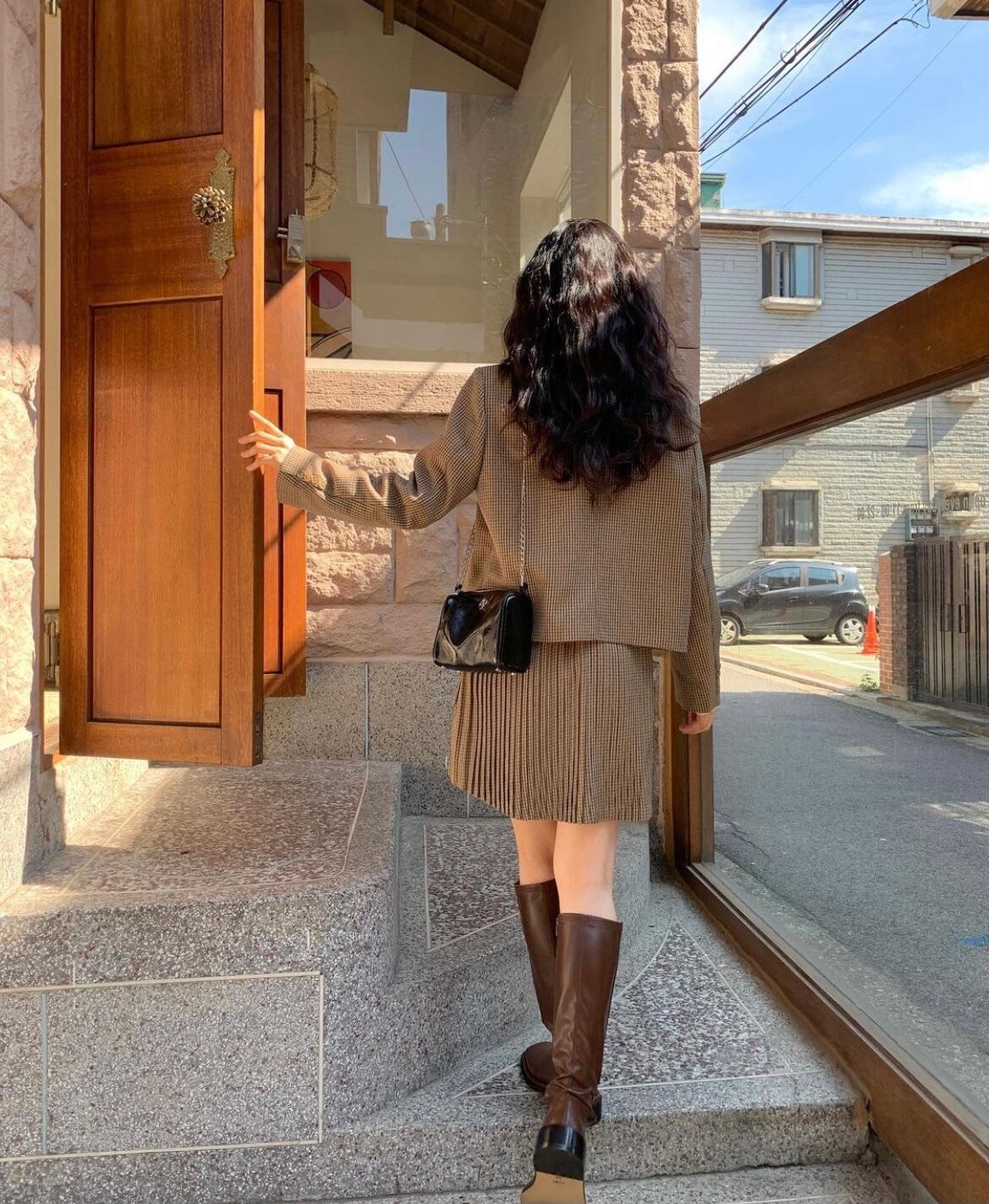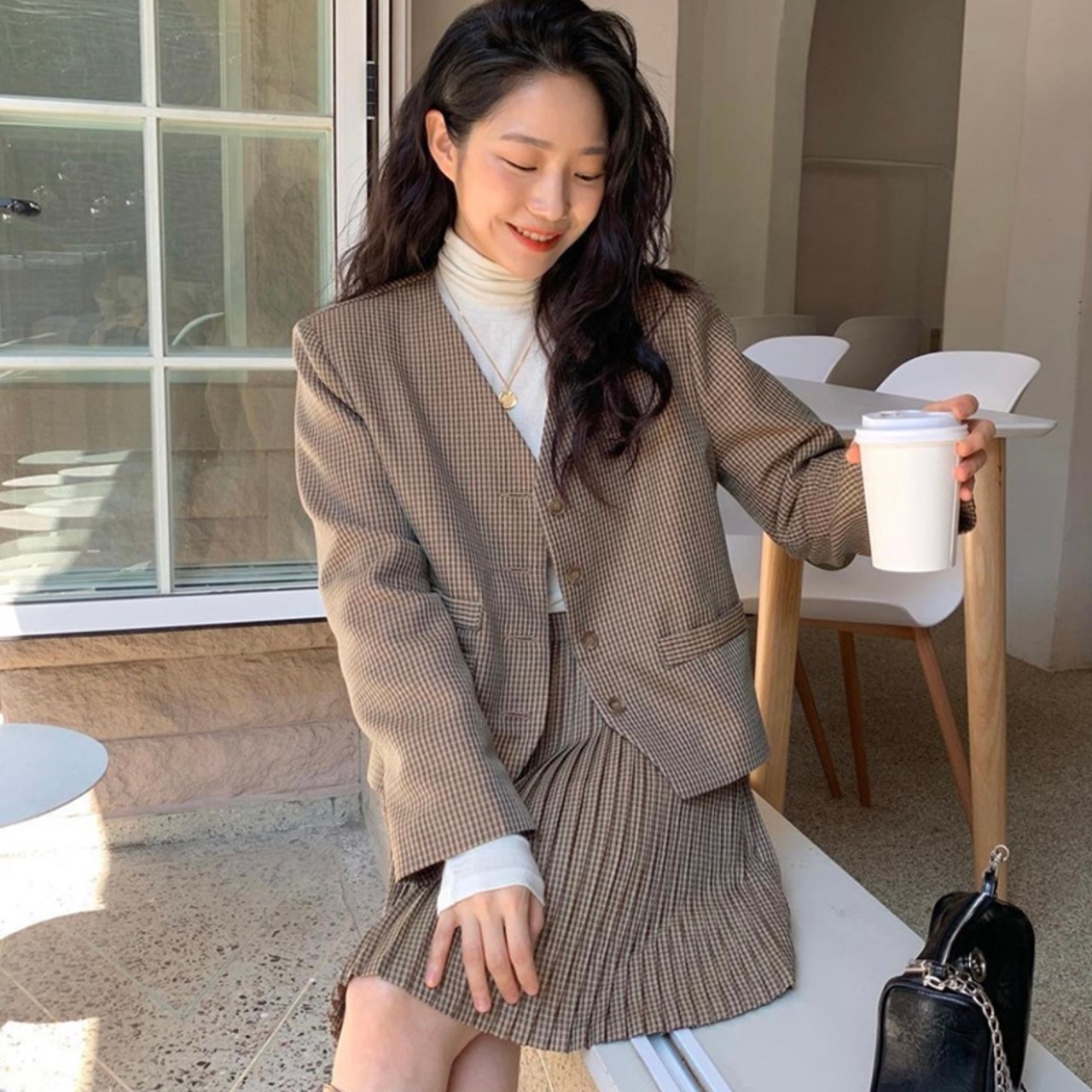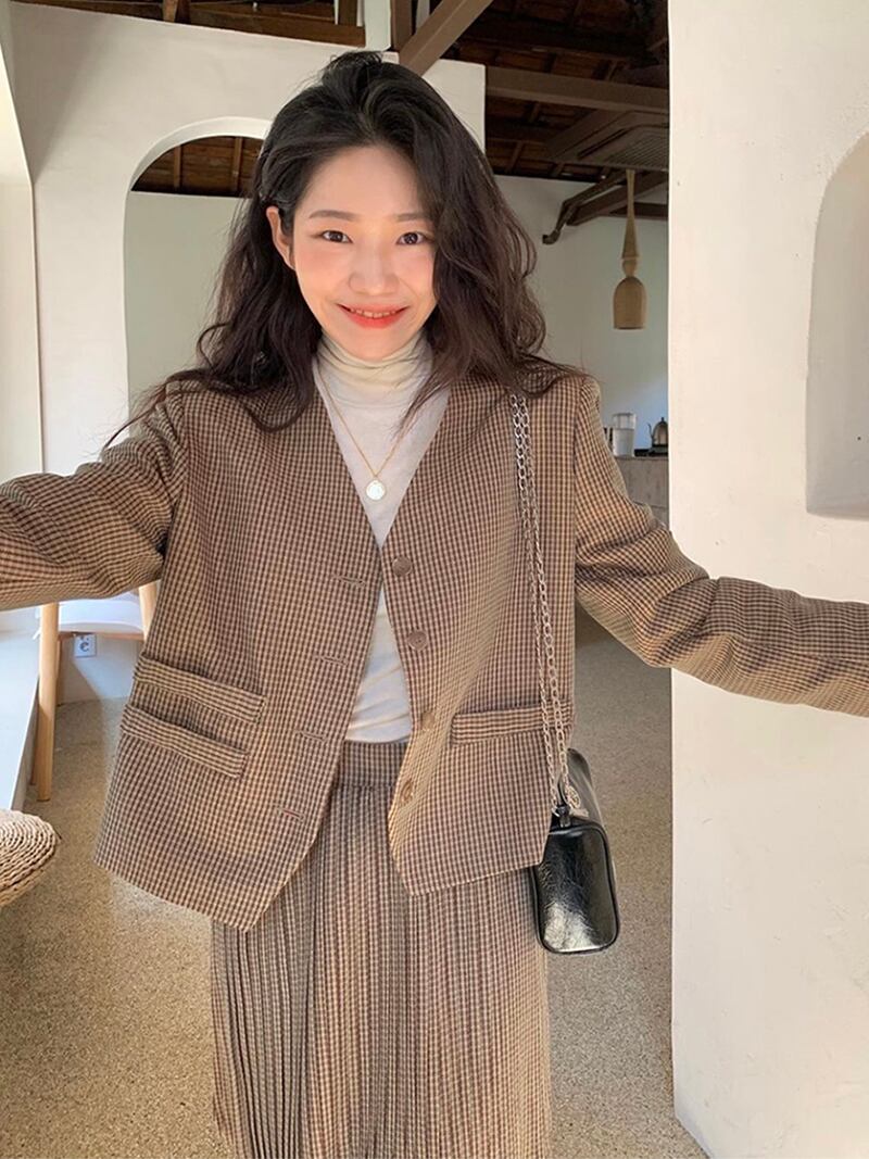 【韓国ファッション】大人可愛い オータムスタンダードVネックショートジャケット ハイウェストウェストプリーツスカート レトロ 秋物 ♡ 韓国86912069756 | パリジェンヌ、韓国系ファッション July