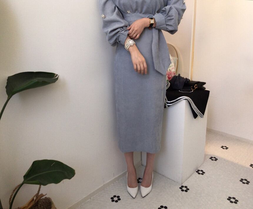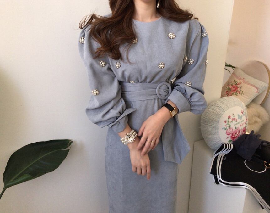 【韓国ファッション】大人可愛い スタンダードラウンドネックFlowerデザイン ウェストスリーブコーデュロイドレス レトロ エレガント Oネック フラワーデザイン ♡ 韓国41576376456 | パリジェンヌ、韓国系ファッション July