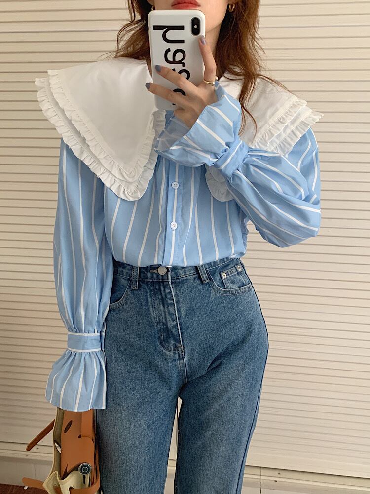 【韓国ファッション】大人可愛い カラールーズスリーブストライプシャツ トップス 大人ガーリー スウィート キュート カジュアル ♡ 韓国52950343917 | パリジェンヌ、韓国系ファッション July