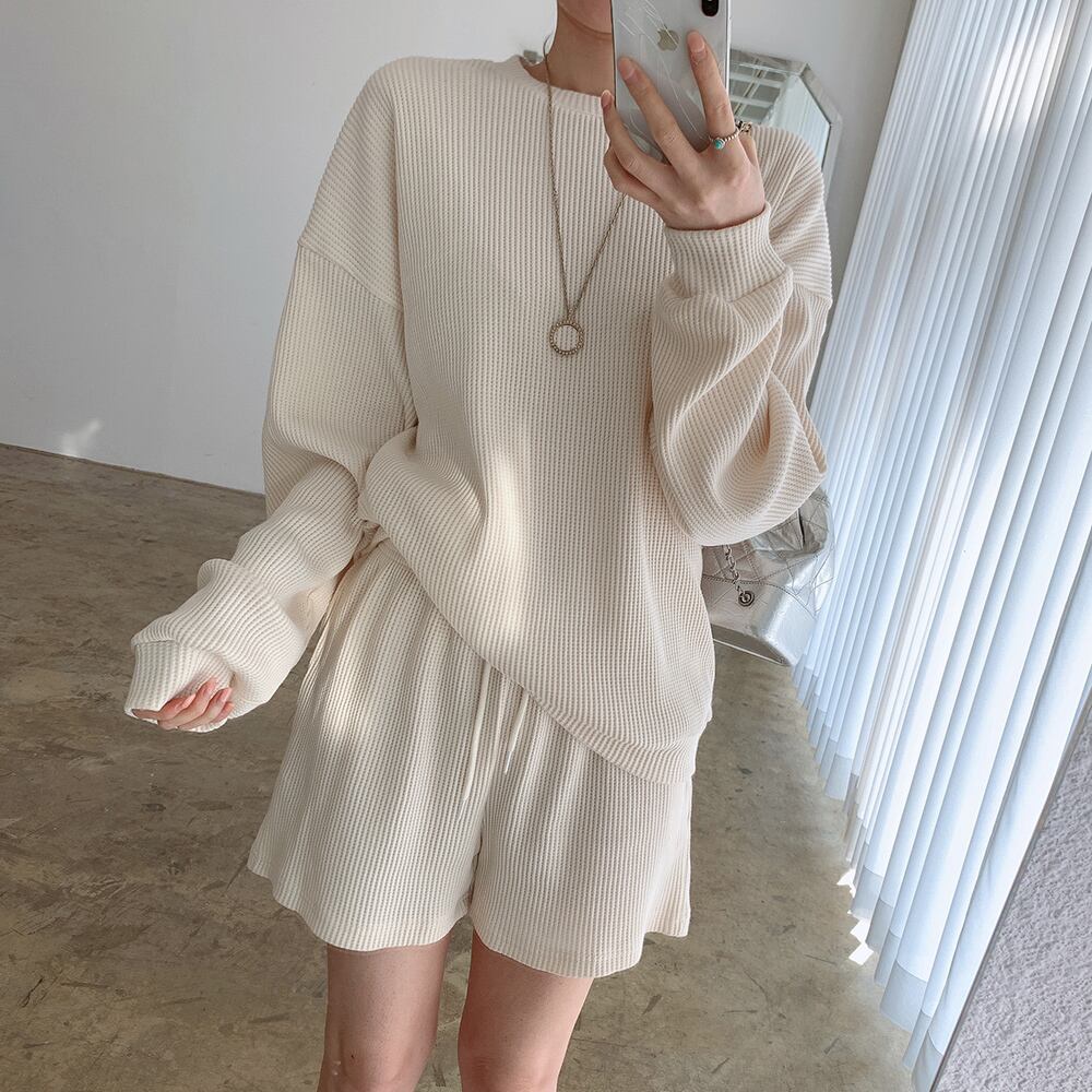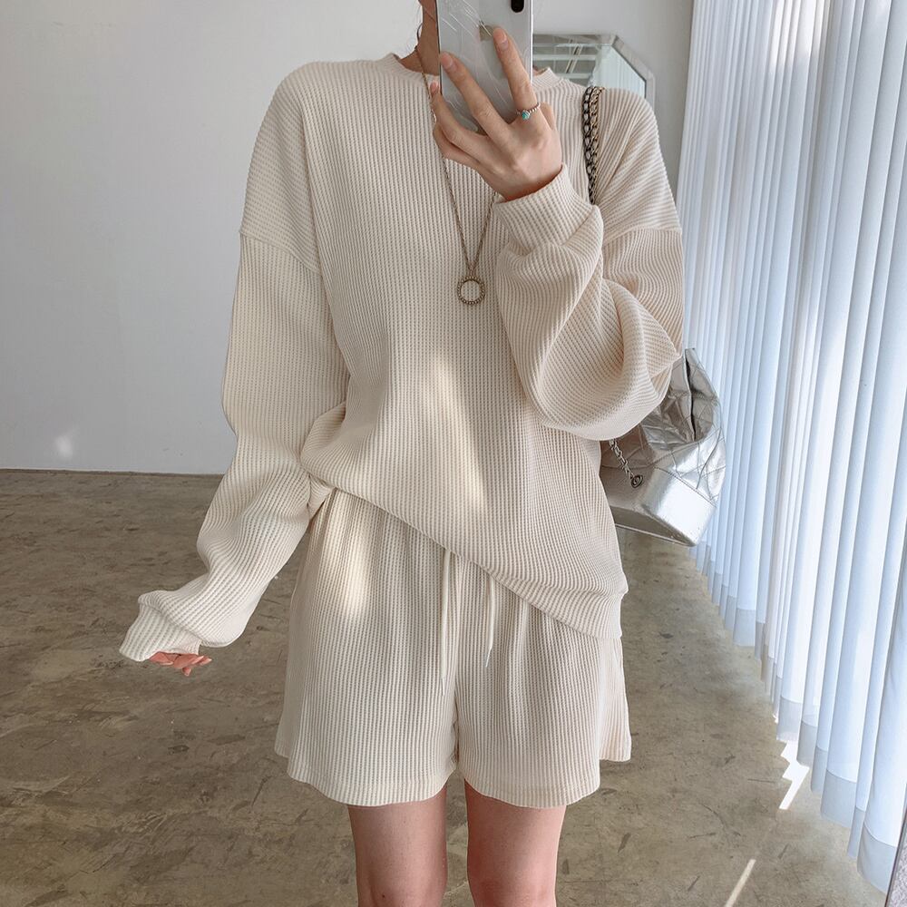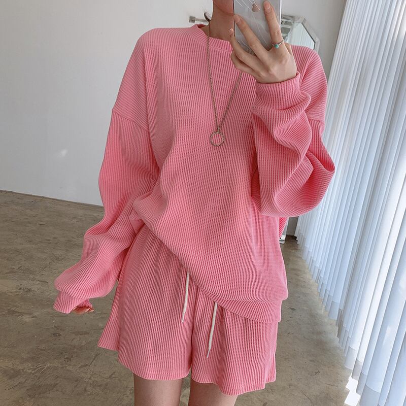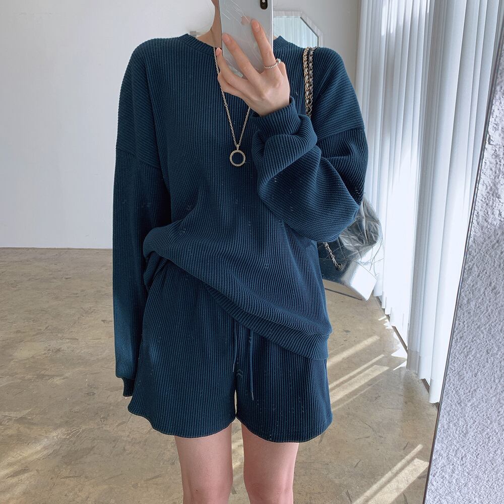 【韓国ファッション】大人可愛い カラーラウンドネックルーズセーター ハイウェストカジュアルショーツ ロング ブルマー Oネック ♡ 韓国9018966503 | パリジェンヌ、韓国系ファッション July