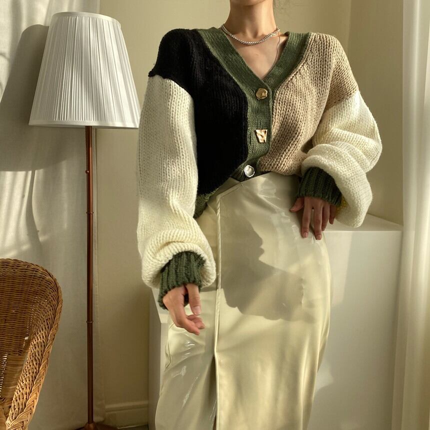 【韓国ファッション】大人可愛い オータムウィンタースタンダードVネックカラールーズショートスリーブカーディガンニットセーター レディース ランタンスリーブ レトロ 秋物 冬物 ♡ 韓国37627987468 | パリジェンヌ、韓国系ファッション July