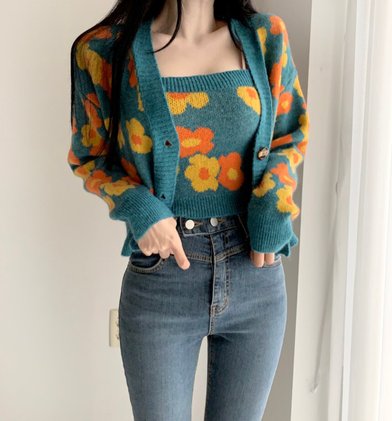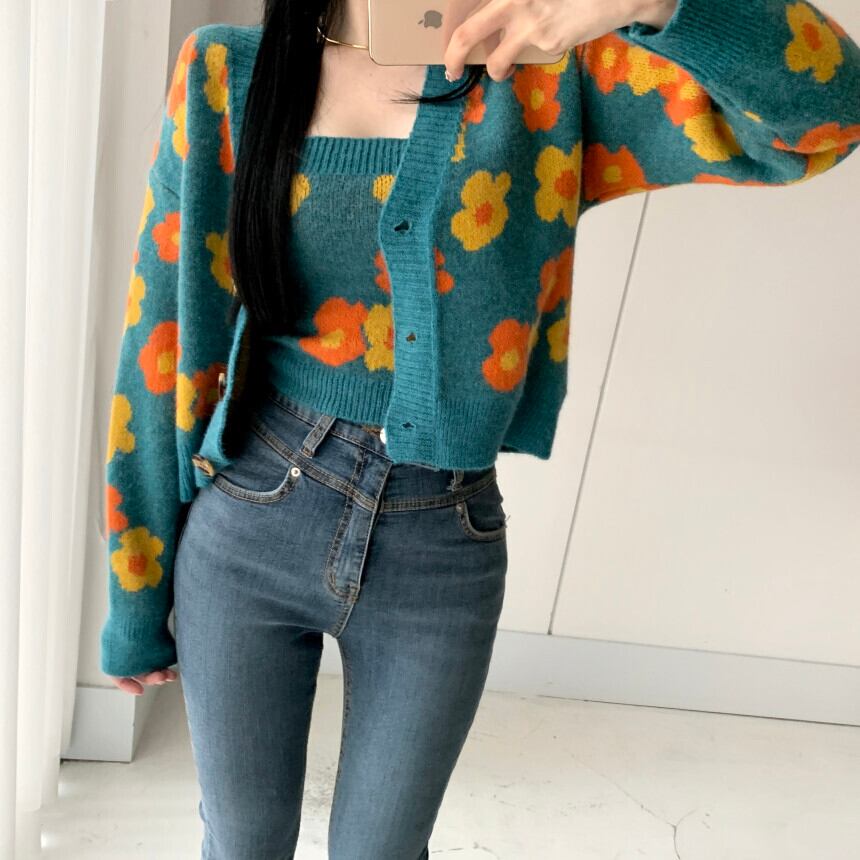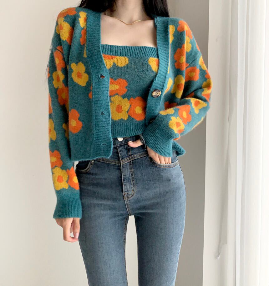 【韓国ファッション】大人可愛い スタンダードVネックFlowerデザイン ルーズニットカーディガンセーター トップス ロング レトロ フラワーデザイン ♡ 韓国30343665500 | パリジェンヌ、韓国系ファッション July