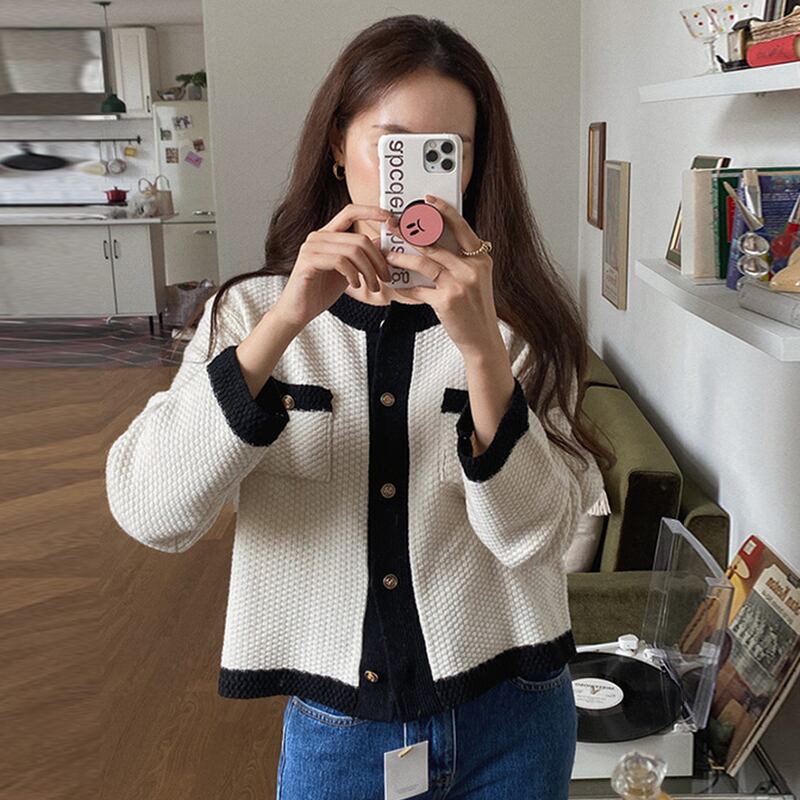 【韓国ファッション】大人可愛い ラウンドネックカラールーズニットカーディガンセーター レディース エレガント Oネック ポケット多め マルチポケット ♡ 韓国44925596060 | パリジェンヌ、韓国系ファッション July