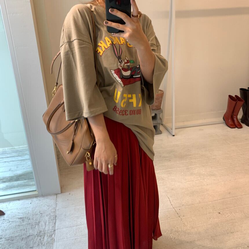 【韓国ファッション】大人可愛い カジュアルラウンドネックプリントTシャツ ハイウェストプリーツスカート ジャケット コットン Oネック ♡ 韓国69194201239 | パリジェンヌ、韓国系ファッション July