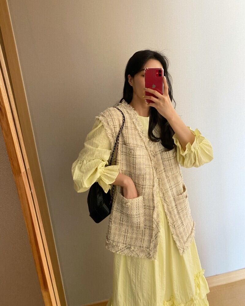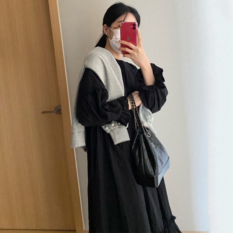 【韓国ファッション】大人可愛い イエローホワイトラウンドネックルーズスリーブドレス ランタンスリーブ Oネック ステッチ ♡ 韓国23788847030 | パリジェンヌ、韓国系ファッション July