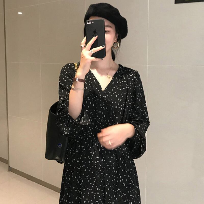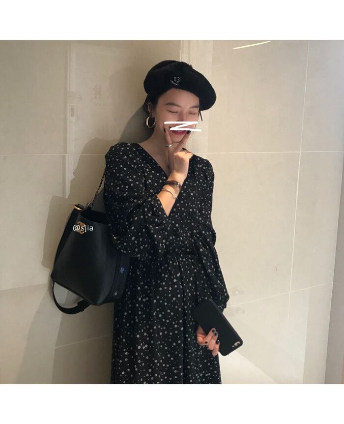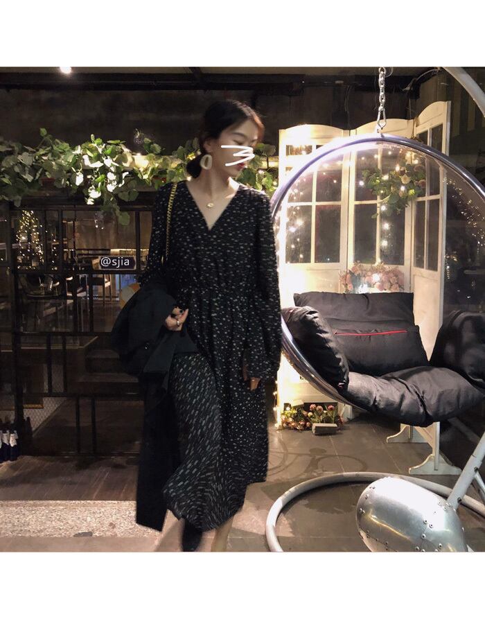 【韓国ファッション】大人可愛い オータムスタンダードフローラルVネックルーズスリーブドレス ロングスカート レトロ エレガント 秋物 花柄 ♡ 韓国25865479860 | パリジェンヌ、韓国系ファッション July