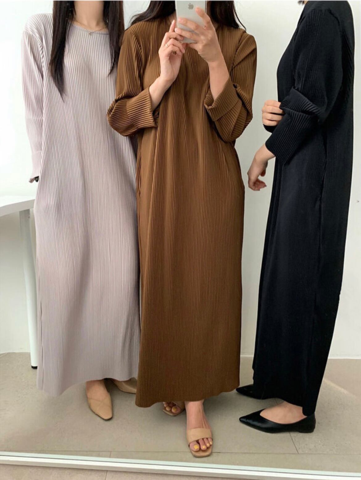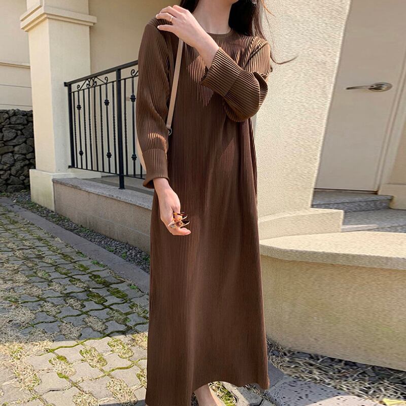 【韓国ファッション】大人可愛い スタンダードラウンドネックストライプルーズスタイルロングドレス レディース レトロ Oネック ♡ 韓国25188335934 | パリジェンヌ、韓国系ファッション July